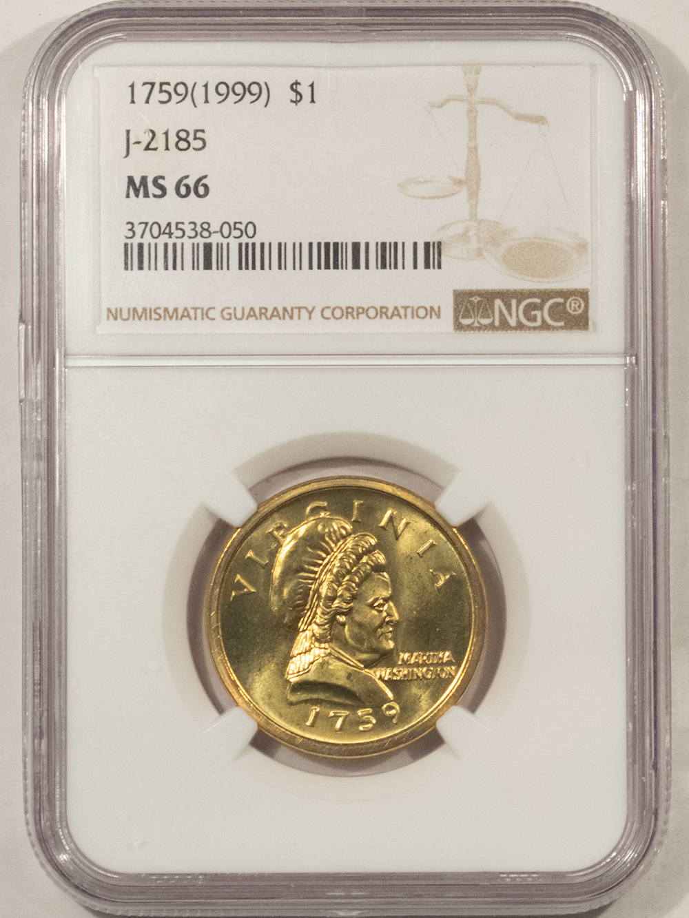 This is a 1759 (1999) $1 MARTHA WASHINGTON PATTERN, J-2185, NGC MS-66, SCARCE! A neat Modern U.S. Mint Pattern. A test for the Sacagawea Dollar released in 2000, This Martha Washington design has been used by the U.S. Mint in recent years as a Pattern design to test metal composition for various new coinage. Although a Modern Pattern, this is very, very scarce! Our commitment is to provide you with quality coins and collectibles at the best possible prices. This piece is no exception. Please note, the coin and collectibles markets do fluctuate, and prices occasionally will change. In this rare circumstance, we will contact you first to verify your order.