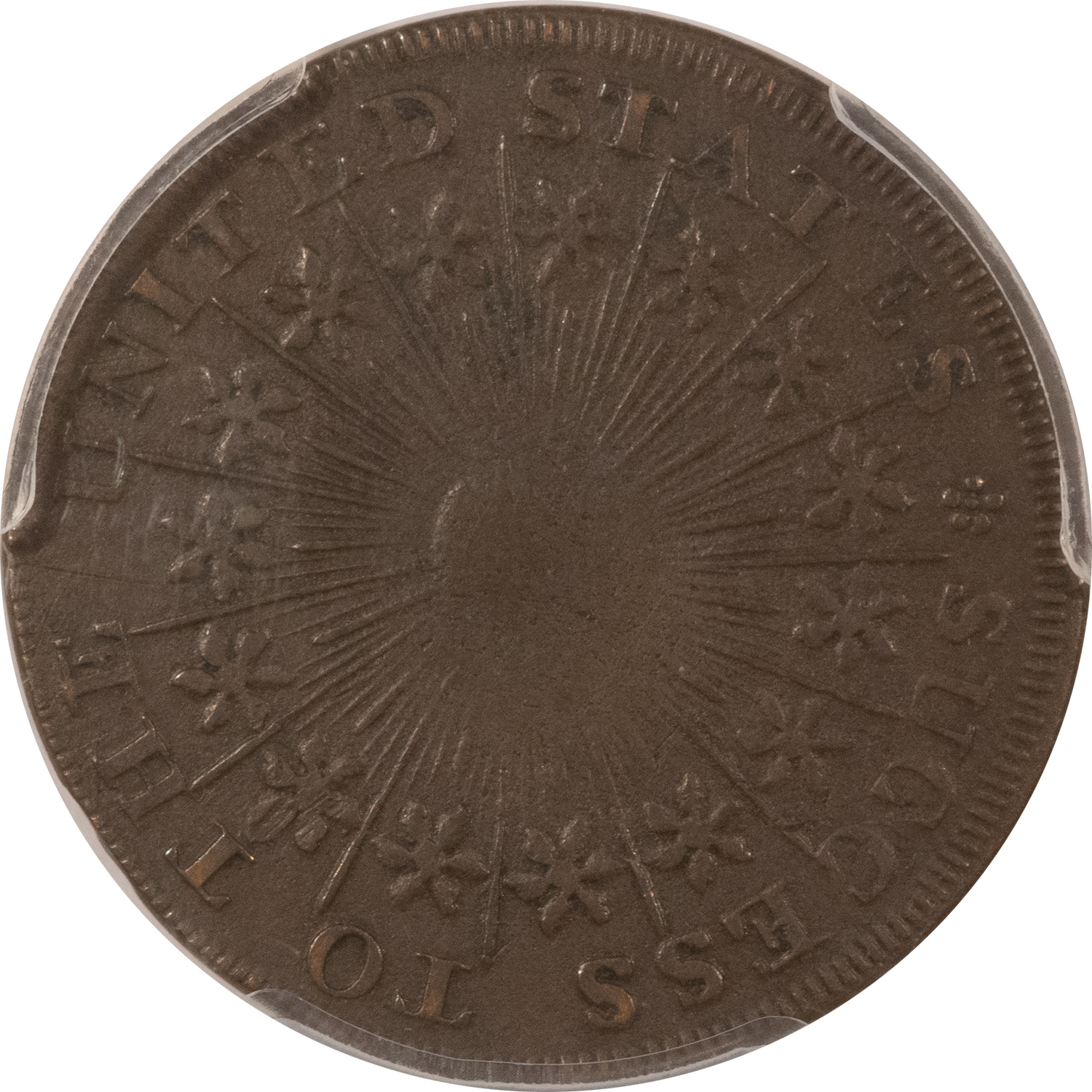 This is a (1790s) AE MEDAL WASHINGTON-SUCCESS LG PLAIN EDGE – PCGS XF-40. These medals were issued in George Washington’s lifetime, commemorating his achievements. They are believed to have been issued around his second inauguration in 1793. The obverse features the bust of George Washington and his name, while the reverse features the “Eye of Providence, with 15 rays and stars for the States and the legend “SUCCESS TO THE UNITED STATES.” These are great pieces to own, as they are very affordable for a scarce piece of period-issue Washingtonia. Our commitment is to provide you with quality coins and collectibles at the best possible prices. This piece is no exception. Please note, the coin and collectibles markets do fluctuate, and prices occasionally will change. In this rare circumstance, we will contact you first to verify your order.
