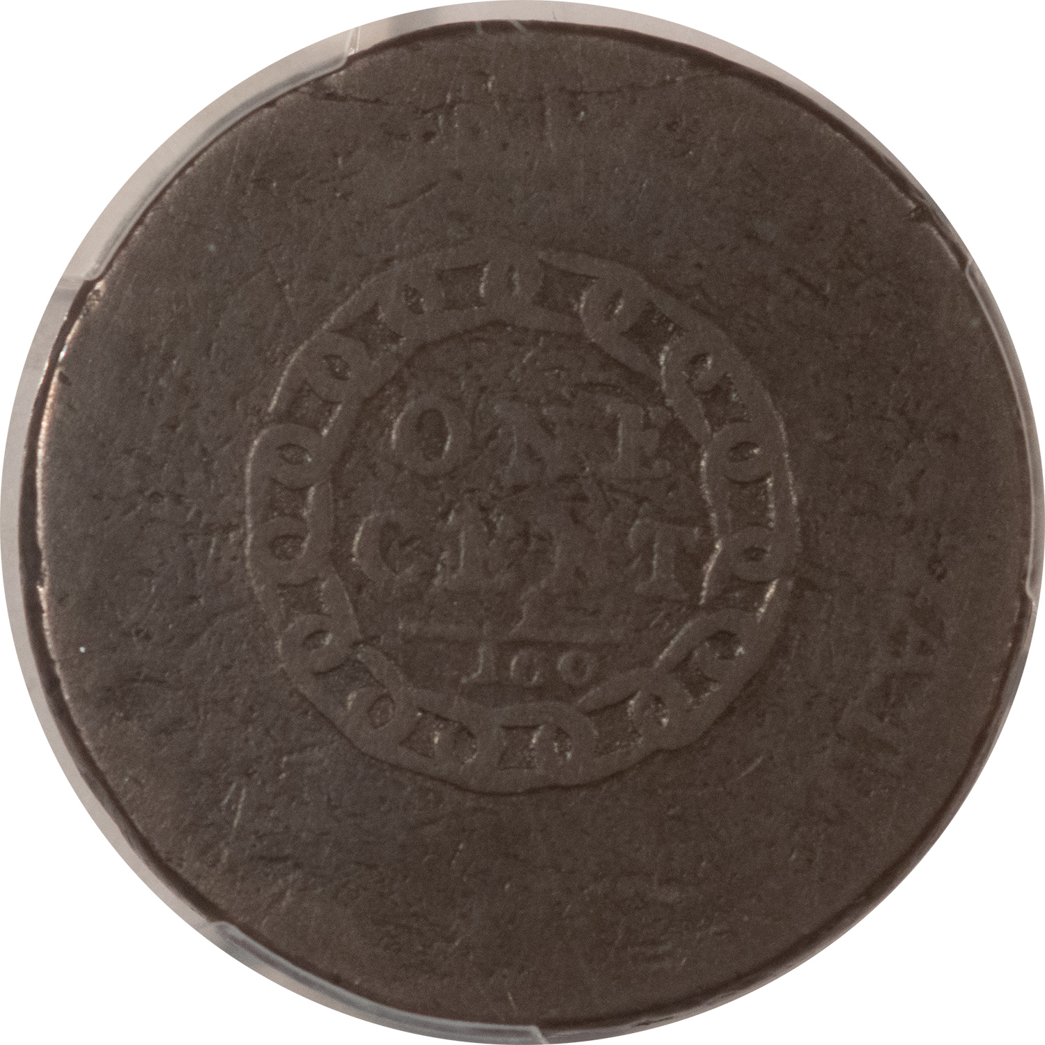 This is a 1793 CHAIN CENT, AMERICA PCGS FR-2, PQ! NICE BROWN, BOLD DETAIL, SOME DATE VISIBLE, LOOKS AG! A very nice looking coin as lower grade Chain Cents go. Medium attractive brown surfaces, a full LIBERTY and a full outline of the bust are visible on the obverse. The reverse has matched brown color, A bold chain with the words ONE CENT and even some of the outer letters available. Based on how Chain Cents are graded, this looks more like an AG to us. A great opportunity to add an “affordable” example. Our commitment is to provide you with quality coins and collectibles at the best possible prices. This piece is no exception. Please note, the coin and collectibles markets do fluctuate, and prices occasionally will change. In this rare circumstance, we will contact you first to verify your order.