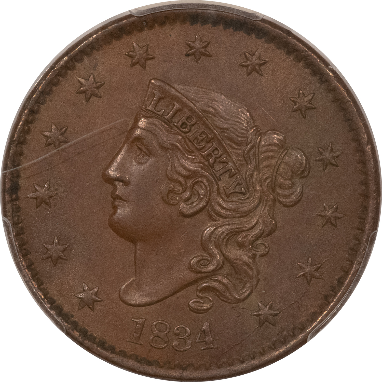 This is a 1834 CORONET HEAD LG CENT LG 8 SM STARS, MED LET – PCGS MS-62 BN, SCARCE, NICE COLOR! Our commitment is to provide you with quality coins and collectibles at the best possible prices. This piece is no exception. Please note, the coin and collectibles markets do fluctuate, and prices occasionally will change. In this rare circumstance, we will contact you first to verify your order.