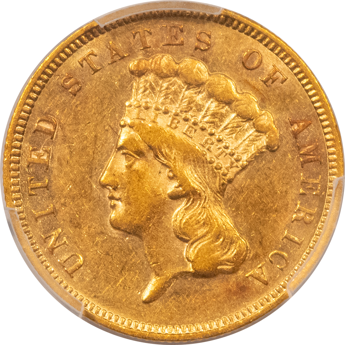 This is a 1860-S $3 GOLD DOLLAR – PCGS AU-55, RARE! ACCORDING TO DAVID AKERS, This date is one of the unsung rarities of the series and ranks 7th in rarity by the number of appearances in our 238 catalogue auction survey and 5th in rarity by average grade. As the auction records indicate, the majority of known specimens are VF or less. Although 7,000 were minted, a substantial portion of the mintage (reportedly 2,592) were later melted. I am unaware of the existence of a full mint state specimen, although I have seen one choice AU-55 piece and as least two others that graded AU-50. SUFFICE TO SAY, THIS IS A RARE OPPORTUNITY TO OWN ONE OF THE SCARCEST DATES OF $3 GOLD. Our commitment is to provide you with quality coins and collectibles at the best possible prices. This piece is no exception. Please note, the coin and collectibles markets do fluctuate, and prices occasionally will change. In this rare circumstance, we will contact you first to verify your order.
