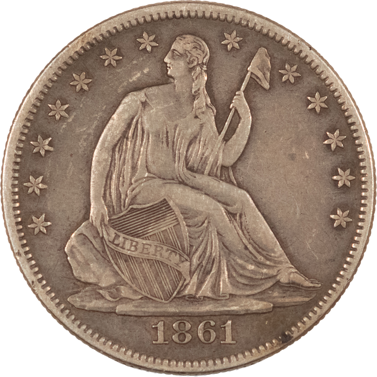 This is a 1861 SEATED LIBERTY HALF DOLLAR – CIVIL WAR DATE, HIGH GRADE EXAMPLE! OLD CLEANING! Our commitment is to provide you with quality coins and collectibles at the best possible prices. This piece is no exception. Please note, the coin and collectibles markets do fluctuate, and prices occasionally will change. In this rare circumstance, we will contact you first to verify your order.