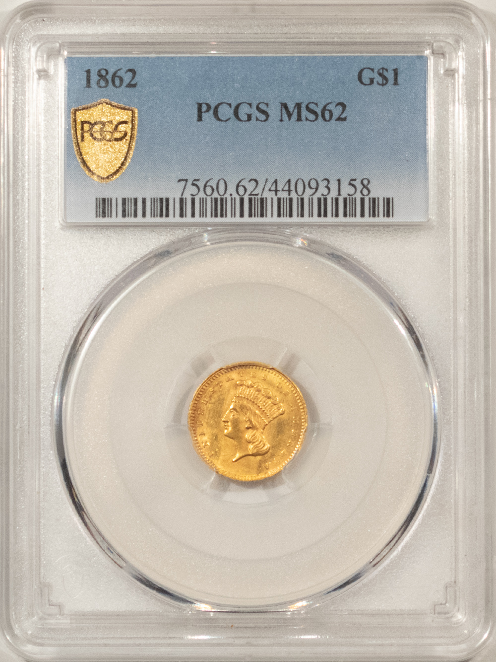 This is a 1862 $1 GOLD DOLLAR – PCGS MS-62. Our commitment is to provide you with quality coins and collectibles at the best possible prices. This piece is no exception. Please note, the coin and collectibles markets do fluctuate, and prices occasionally will change. In this rare circumstance, we will contact you first to verify your order.