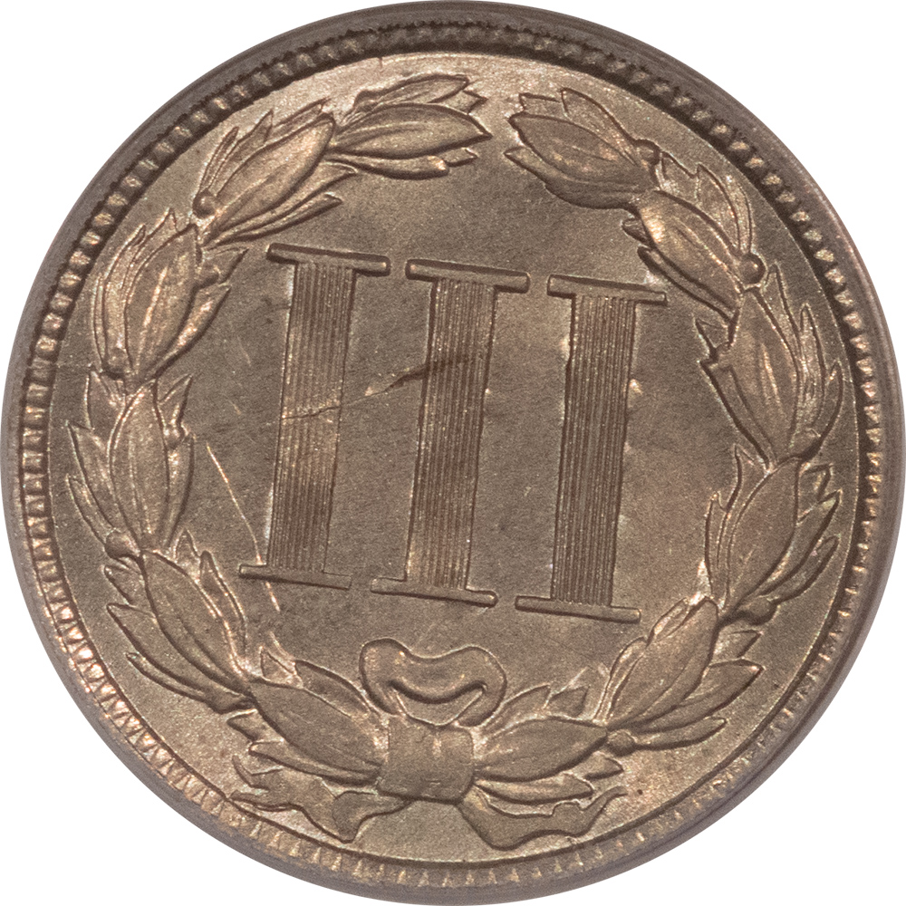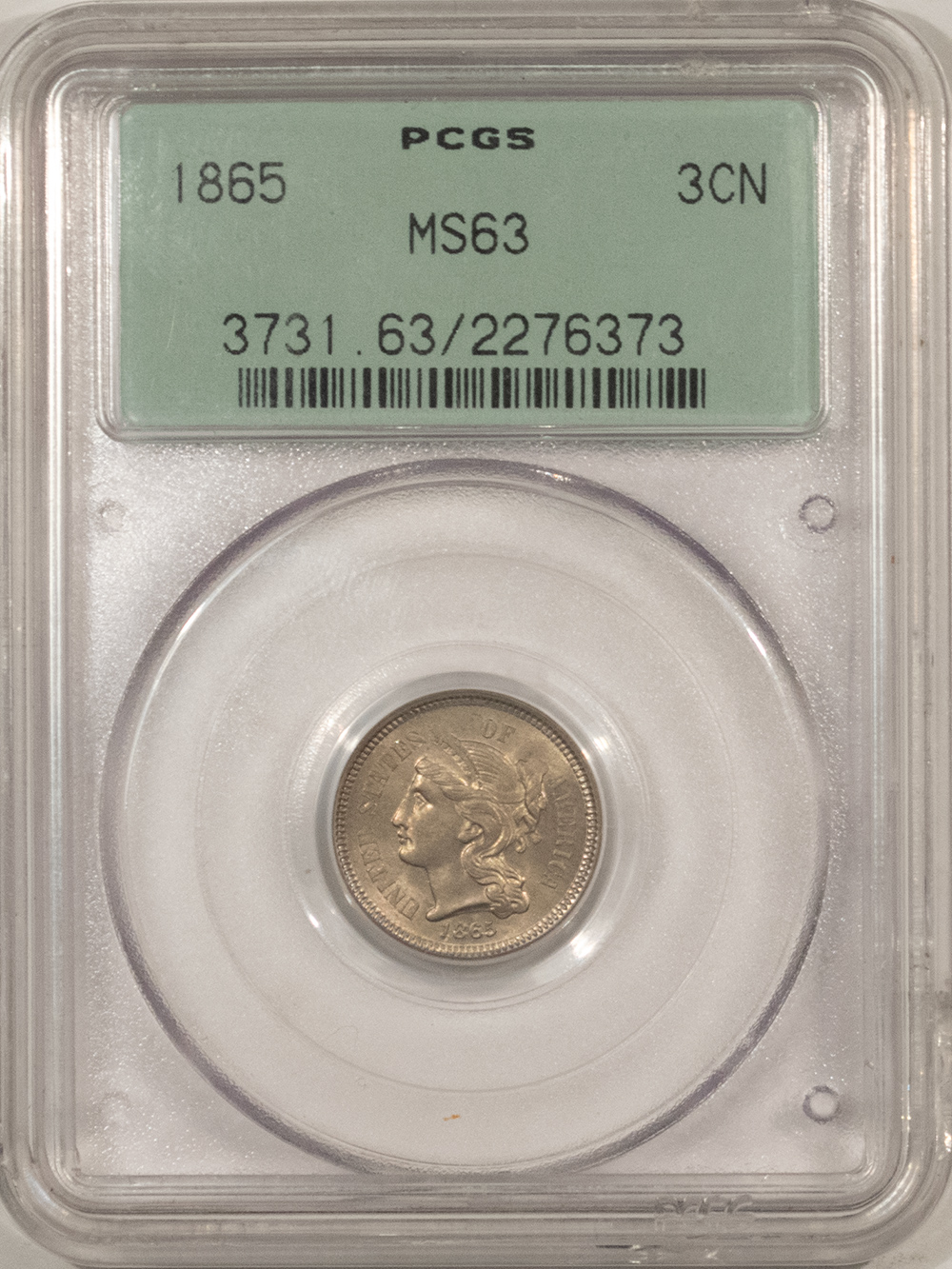 This is a 1865 THREE CENT NICKEL – PCGS MS-63, 2 PIECE RATTLER, PQ, TERMINAL REVERSE DIE!! A great piece in a pristine old PCGS holder. The reverse die is terminal with a planchet crack as a result of a heavy clashing of the dies. Our commitment is to provide you with quality coins and collectibles at the best possible prices. This piece is no exception. Please note, the coin and collectibles markets do fluctuate, and prices occasionally will change. In this rare circumstance, we will contact you first to verify your order.
