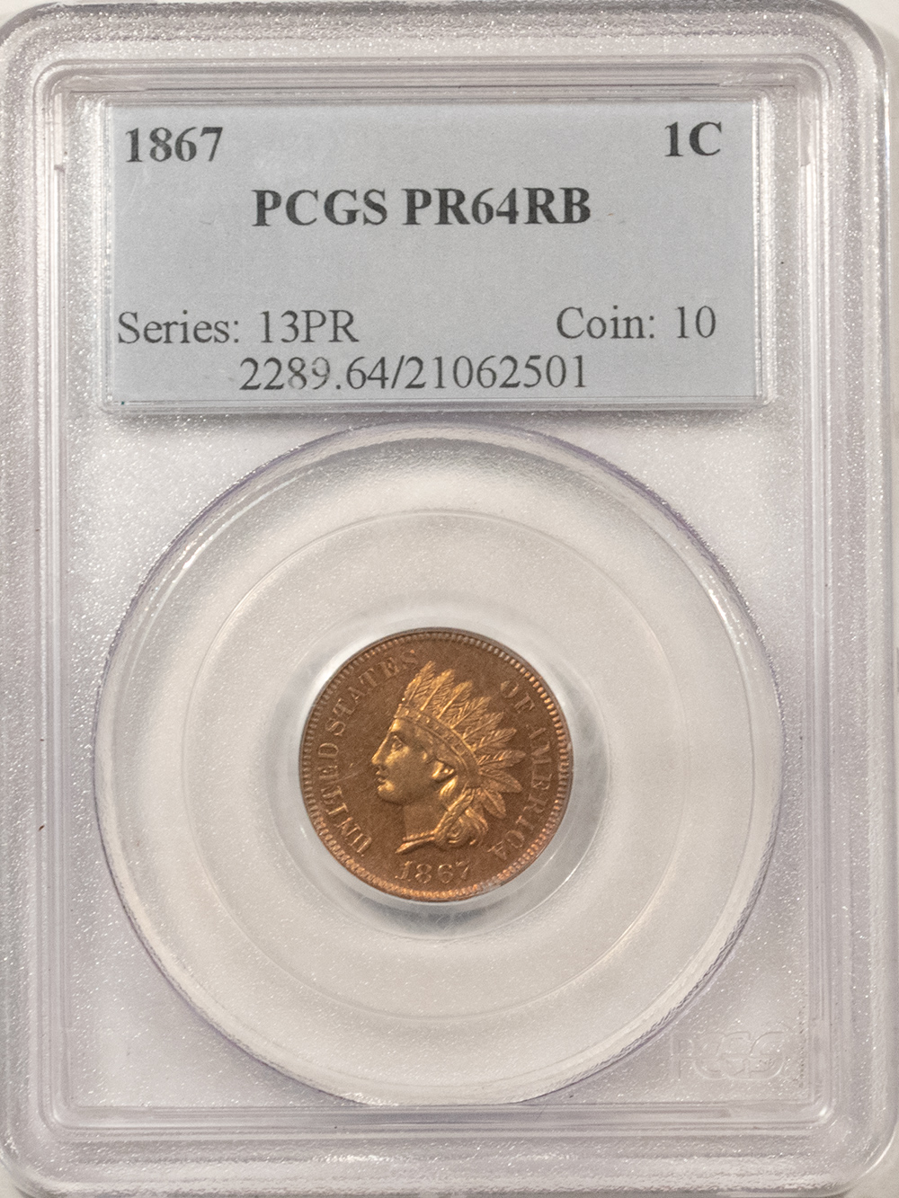 This is a 1867 PROOF INDIAN CENT – PCGS PR-64 RB, ATTRACTIVE! Our commitment is to provide you with quality coins and collectibles at the best possible prices. This piece is no exception. Please note, the coin and collectibles markets do fluctuate, and prices occasionally will change. In this rare circumstance, we will contact you first to verify your order.