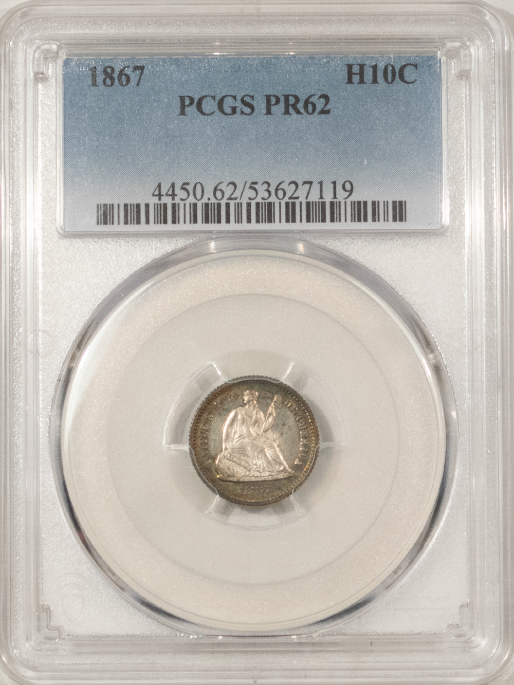 This is a 1867 PROOF SEATED LIBERTY HALF DIME – PCGS PR-62, PRETTY! Our commitment is to provide you with quality coins and collectibles at the best possible prices. This piece is no exception. Please note, the coin and collectibles markets do fluctuate, and prices occasionally will change. In this rare circumstance, we will contact you first to verify your order.