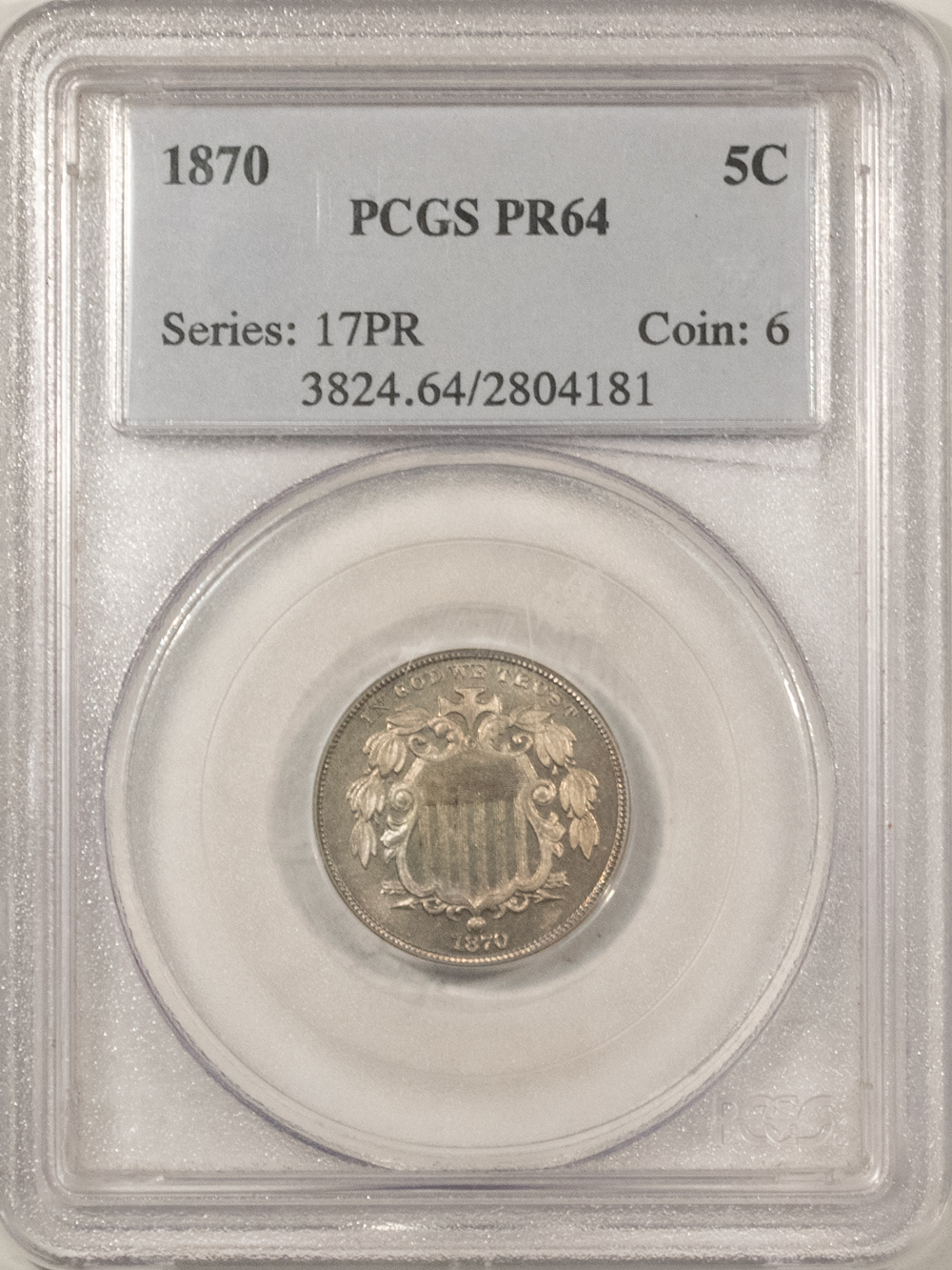 This is a 1870 PROOF SHIELD NICKEL – PCGS PR-64. Our commitment is to provide you with quality coins and collectibles at the best possible prices. This piece is no exception. Please note, the coin and collectibles markets do fluctuate, and prices occasionally will change. In this rare circumstance, we will contact you first to verify your order.