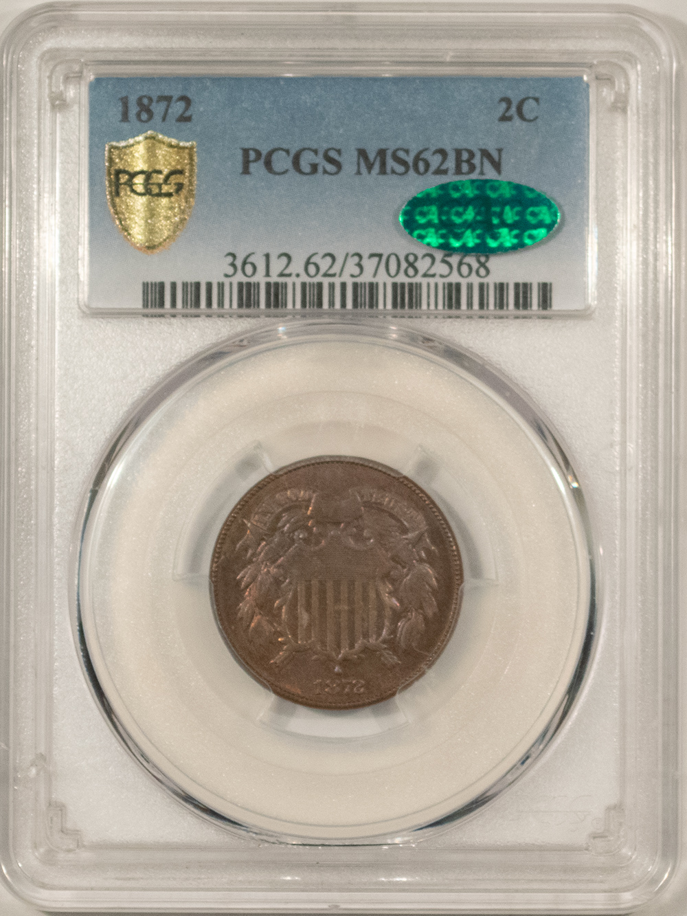 This is a 1872 TWO CENT PIECE – PCGS MS-62 BN, KEY-DATE, PREMIUM QUALITY, CAC APPROVED! Our commitment is to provide you with quality coins and collectibles at the best possible prices. This piece is no exception. Please note, the coin and collectibles markets do fluctuate, and prices occasionally will change. In this rare circumstance, we will contact you first to verify your order.