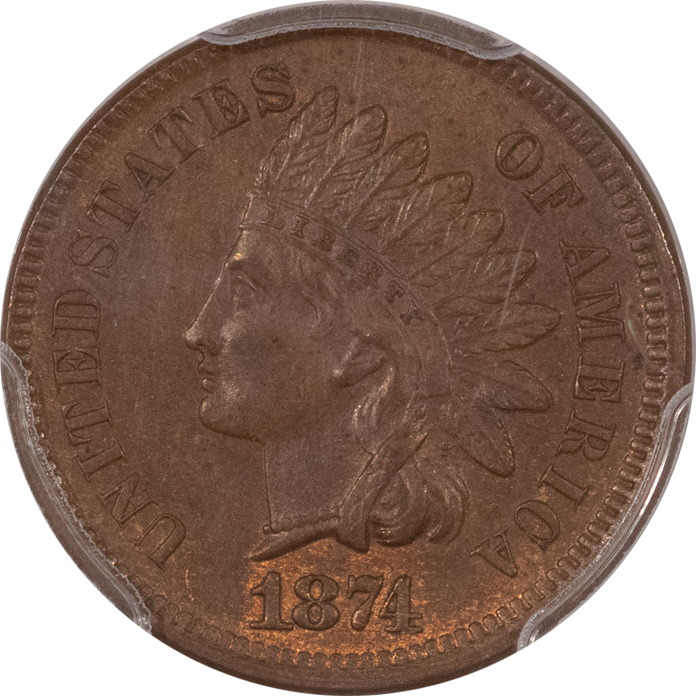 This is a 1874 INDIAN CENT – PCGS MS-62 BN, CHOICE & ORIGINAL! Our commitment is to provide you with quality coins and collectibles at the best possible prices. This piece is no exception. Please note, the coin and collectibles markets do fluctuate, and prices occasionally will change. In this rare circumstance, we will contact you first to verify your order.