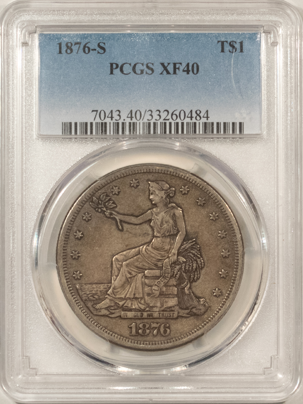This is a 1876-S $1 TRADE DOLLAR – PCGS XF-40, PERFECT ORIGINAL! PREMIUM QUALITY!! Our commitment is to provide you with quality coins and collectibles at the best possible prices. This piece is no exception. Please note, the coin and collectibles markets do fluctuate, and prices occasionally will change. In this rare circumstance, we will contact you first to verify your order.