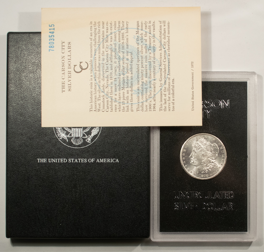 This is a 1878-CC $1 MORGAN DOLLAR GSA – UNCIRCULATED WITH BOX AND COA, CARSON CITY! Our commitment is to provide you with quality coins and collectibles at the best possible prices. This piece is no exception. Please note, the coin and collectibles markets do fluctuate, and prices occasionally will change. In this rare circumstance, we will contact you first to verify your order.