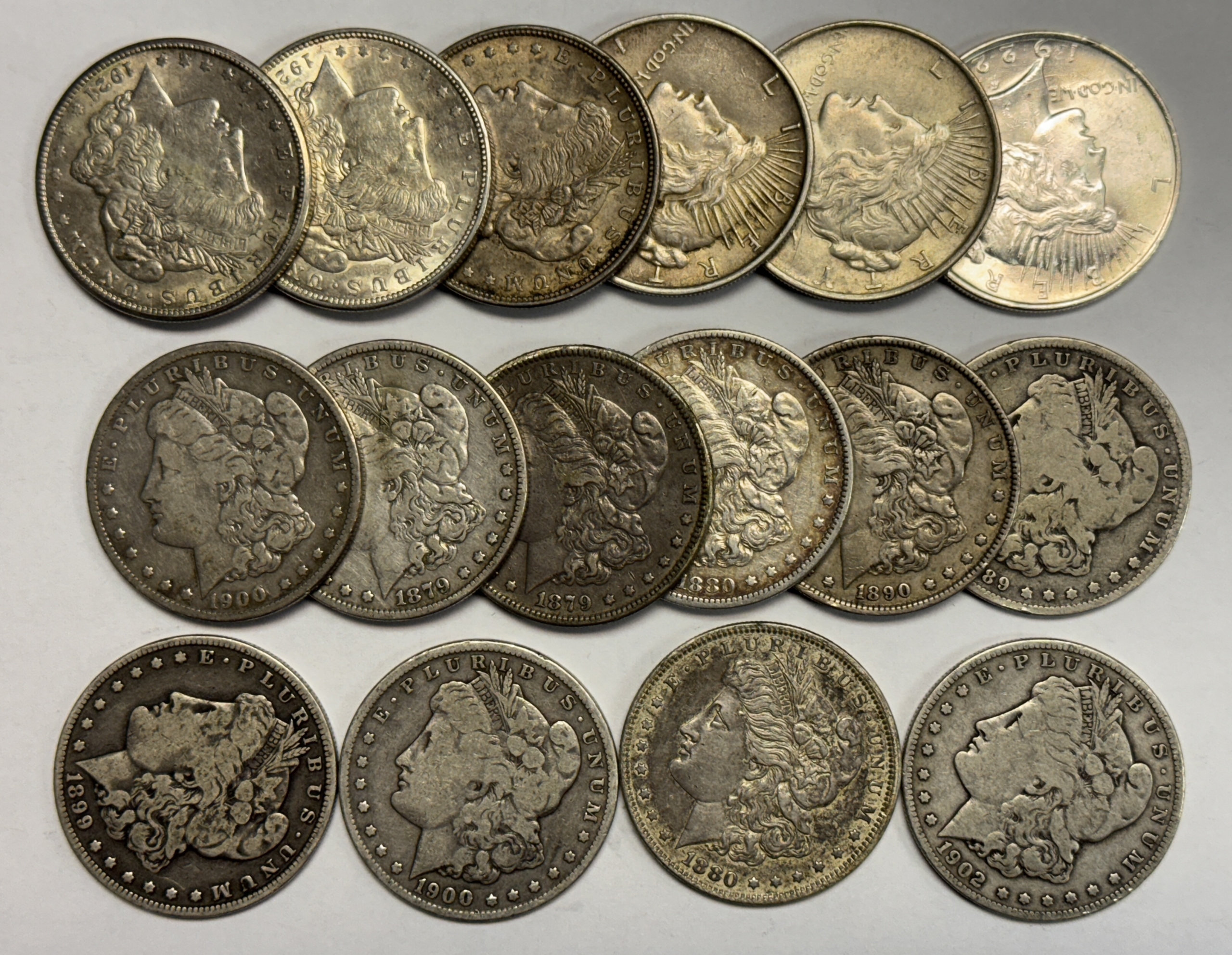 This is a 1879-1922 16 COIN MORGAN & PEACE DOLLAR LOT, NICE CIRCULATED, GOOD DATE MIX. Our commitment is to provide you with quality coins and collectibles at the best possible prices. This piece is no exception. Please note, the coin and collectibles markets do fluctuate, and prices occasionally will change. In this rare circumstance, we will contact you first to verify your order.