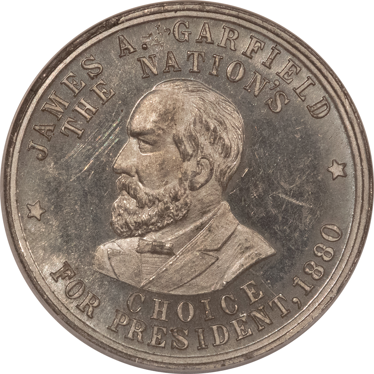 This is a 1881 JAMES GARFIELD POLITICAL TOKEN, DEWITT JG-1880-7B, WHITE METAL-NGC MS-64 DPL! Our commitment is to provide you with quality coins and collectibles at the best possible prices. This piece is no exception. Please note, the coin and collectibles markets do fluctuate, and prices occasionally will change. In this rare circumstance, we will contact you first to verify your order.