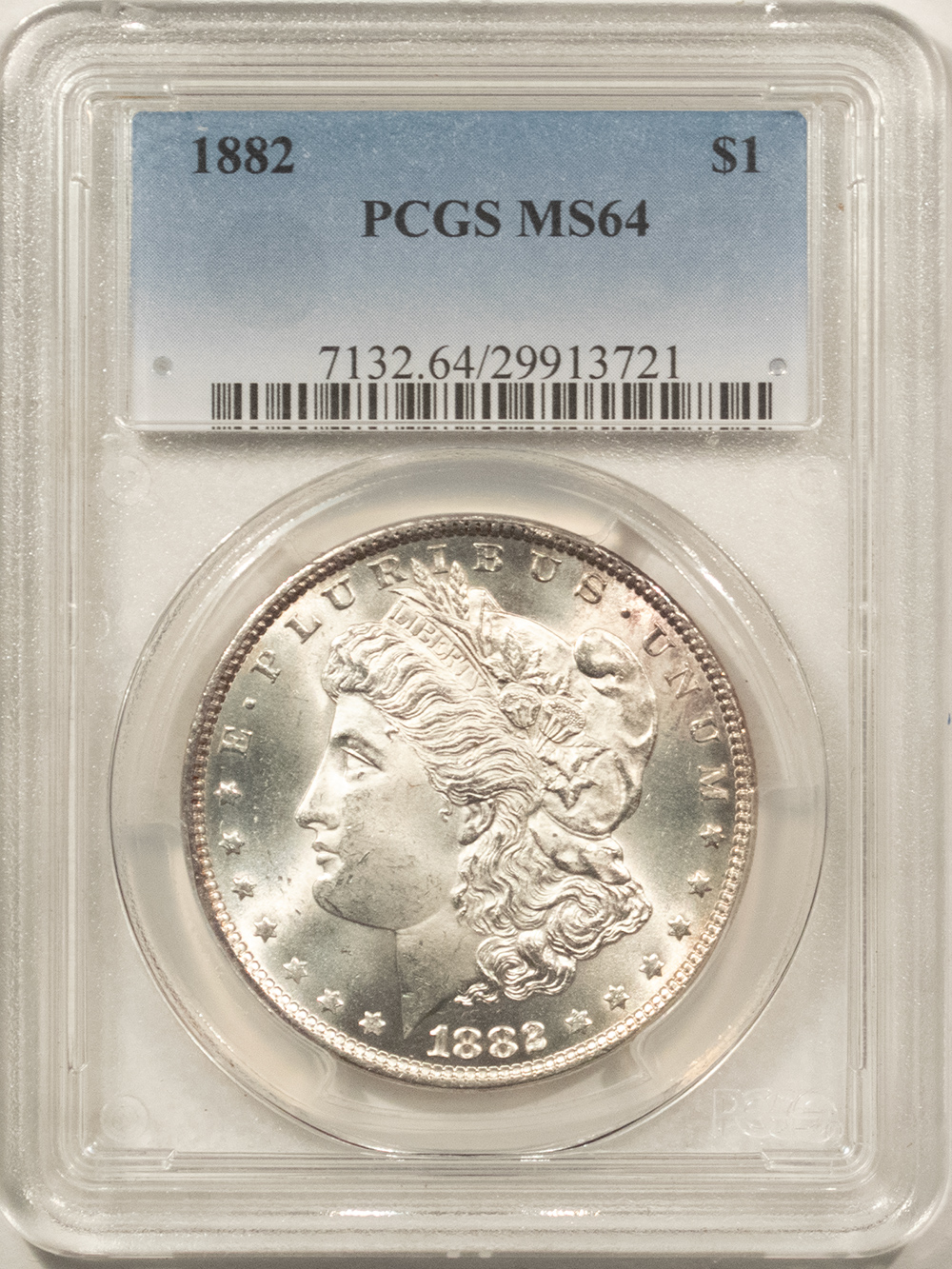 This is a 1882 $1 MORGAN DOLLAR – PCGS MS-64. Our commitment is to provide you with quality coins and collectibles at the best possible prices. This piece is no exception. Please note, the coin and collectibles markets do fluctuate, and prices occasionally will change. In this rare circumstance, we will contact you first to verify your order.