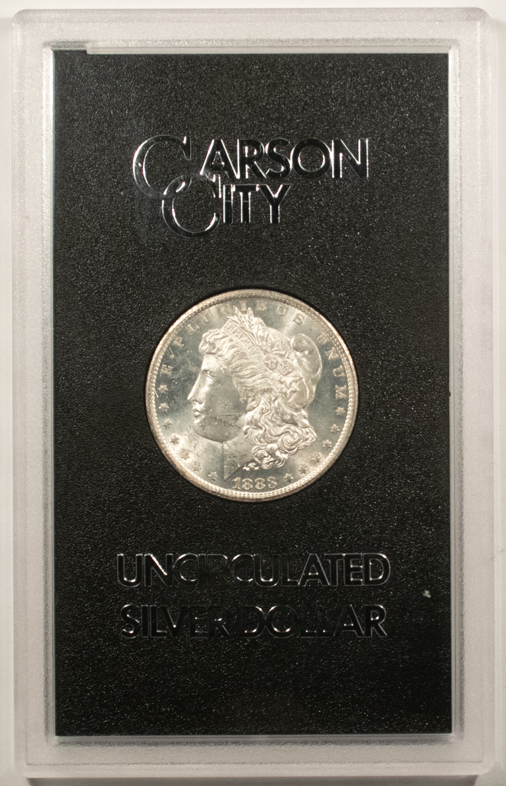 This is a 1883-CC MORGAN DOLLAR, GSA HARD CASE , BOX/CERT-LUSTROUS WHITE W/ PL FIELDS! Please note, the coin and collectibles markets do fluctuate, and prices occasionally will change. In this rare circumstance, we will contact you first to verify your order. Our commitment is to provide you with quality coins and collectibles at the best possible prices. This piece is no exception.