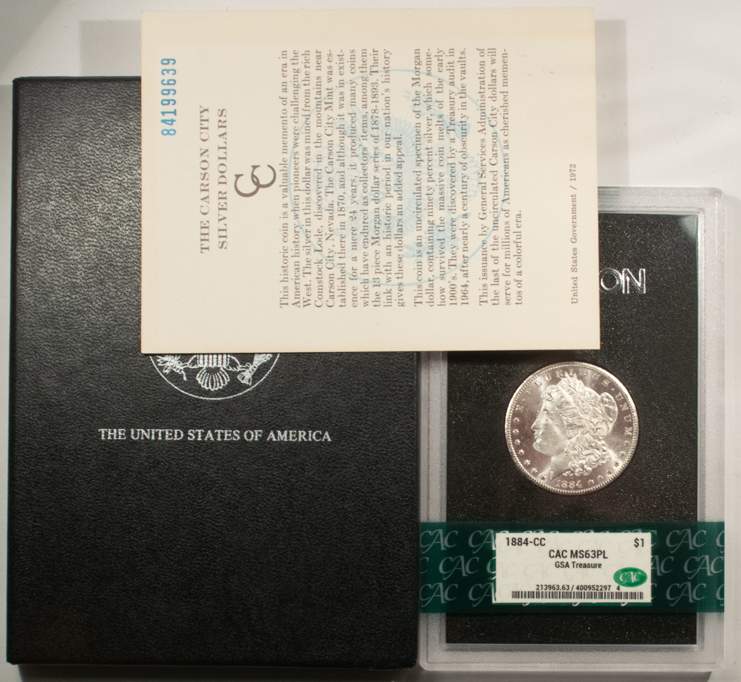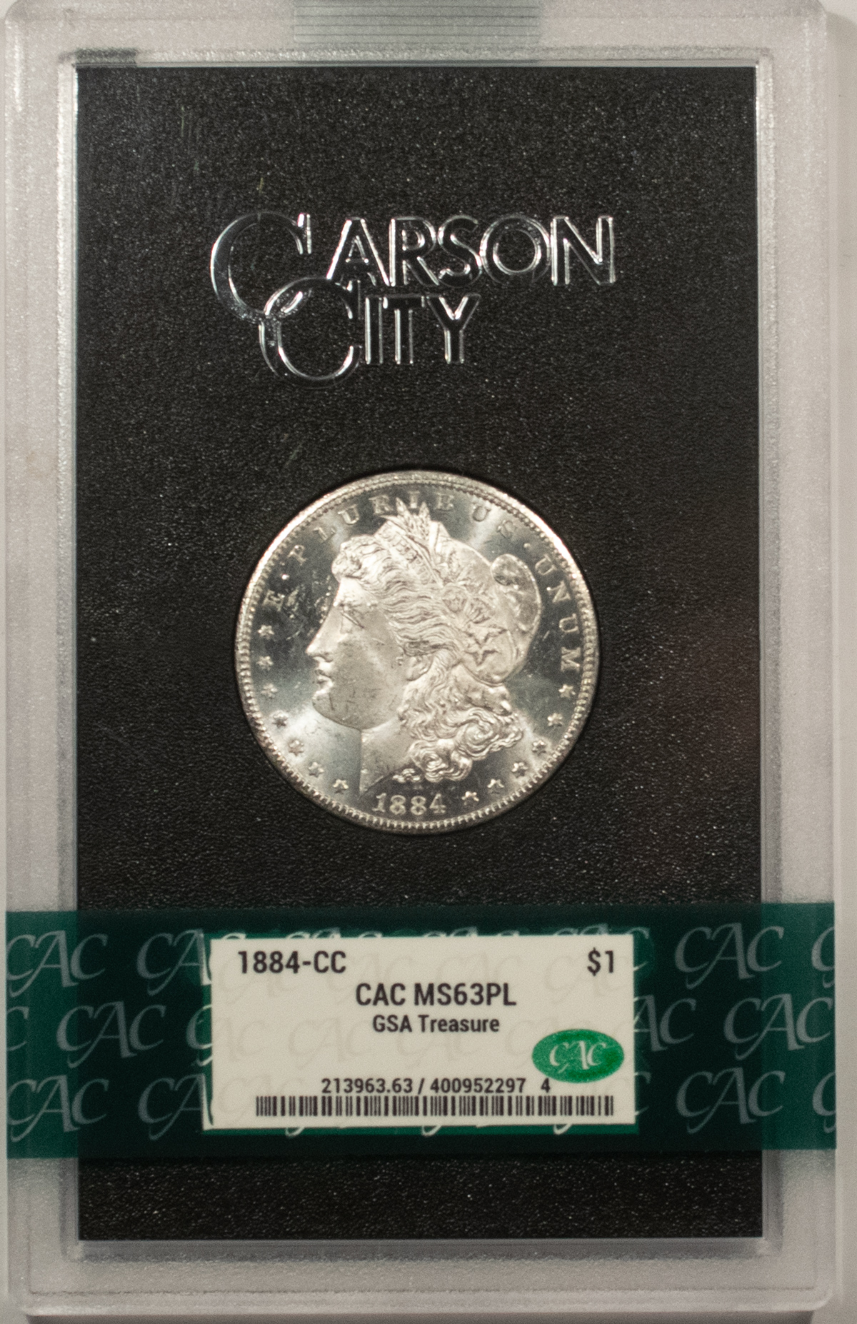 This is a 1884-CC $1 MORGAN DOLLAR GSA TREASURE – CACG MS-63 PL, CARSON CITY! CAC! WITH BOX AND CARD! Our commitment is to provide you with quality coins and collectibles at the best possible prices. This piece is no exception. Please note, the coin and collectibles markets do fluctuate, and prices occasionally will change. In this rare circumstance, we will contact you first to verify your order.