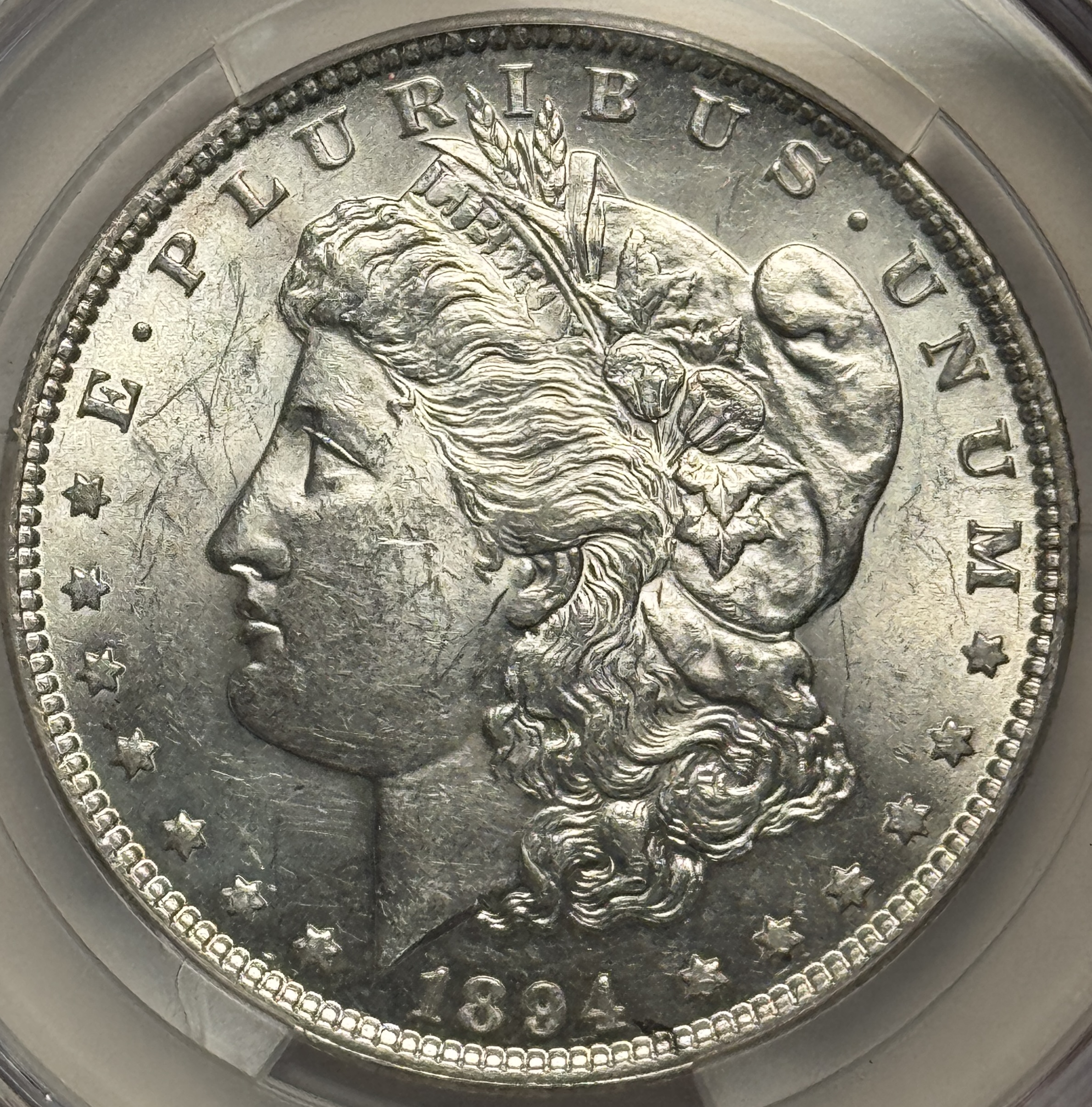 This is a 1894 MORGAN DOLLAR, CACGS AU-58, SLIDER UNC, SEMI-KEY DATE & 2ND LOWEST MINTAGE! Our commitment is to provide you with quality coins and collectibles at the best possible prices. This piece is no exception. Please note, the coin and collectibles markets do fluctuate, and prices occasionally will change. In this rare circumstance, we will contact you first to verify your order.