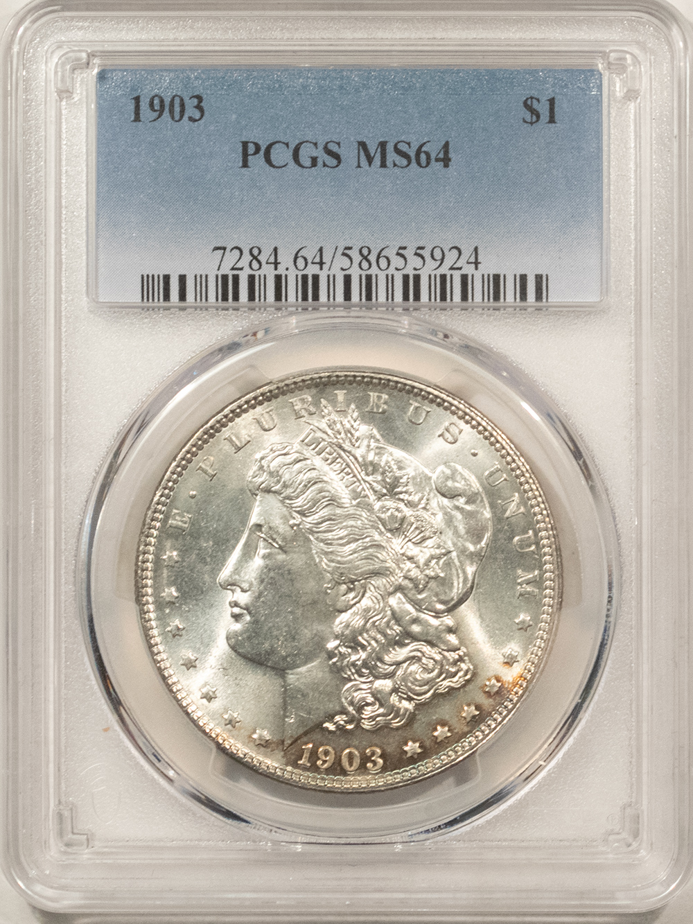 This is a 1903 $1 MORGAN DOLLAR – PCGS MS-64. Our commitment is to provide you with quality coins and collectibles at the best possible prices. This piece is no exception. Please note, the coin and collectibles markets do fluctuate, and prices occasionally will change. In this rare circumstance, we will contact you first to verify your order.