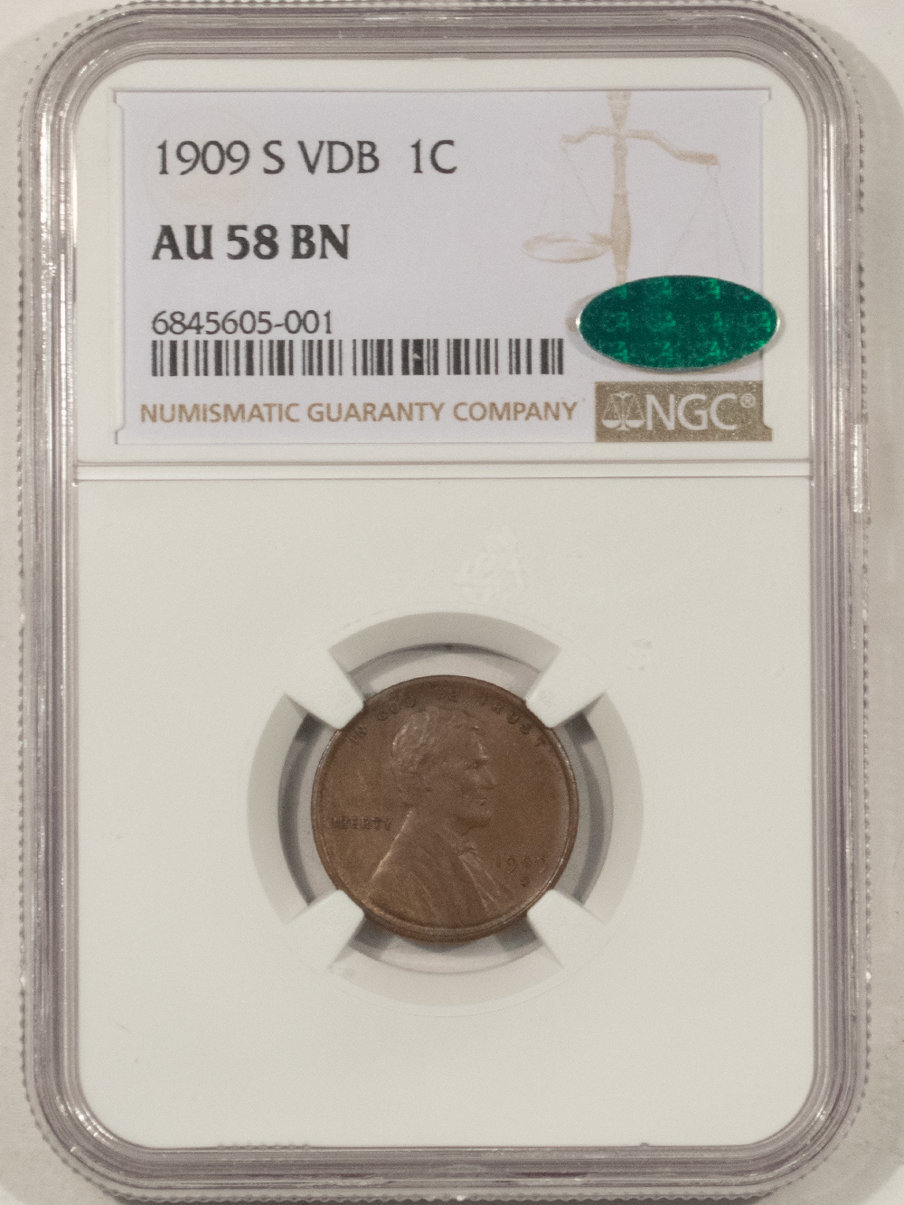 This is a 1909-S VDB LINCOLN CENT – NGC AU-58 BN, CAC APPROVED! Our commitment is to provide you with quality coins and collectibles at the best possible prices. This piece is no exception. Please note, the coin and collectibles markets do fluctuate, and prices occasionally will change. In this rare circumstance, we will contact you first to verify your order.