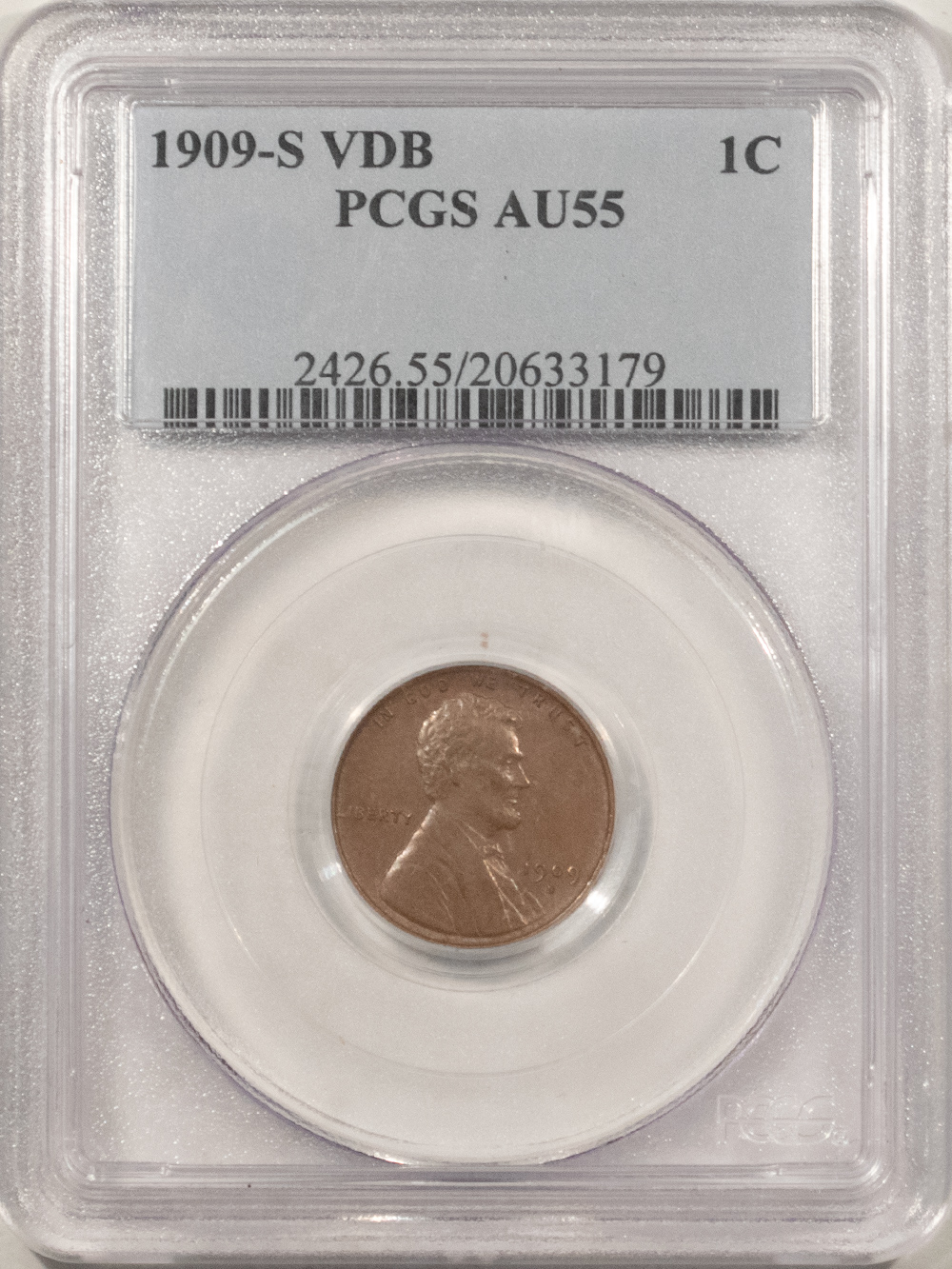 This is a 1909-S VDB LINCOLN CENT – PCGS AU-55. Our commitment is to provide you with quality coins and collectibles at the best possible prices. This piece is no exception. Please note, the coin and collectibles markets do fluctuate, and prices occasionally will change. In this rare circumstance, we will contact you first to verify your order.