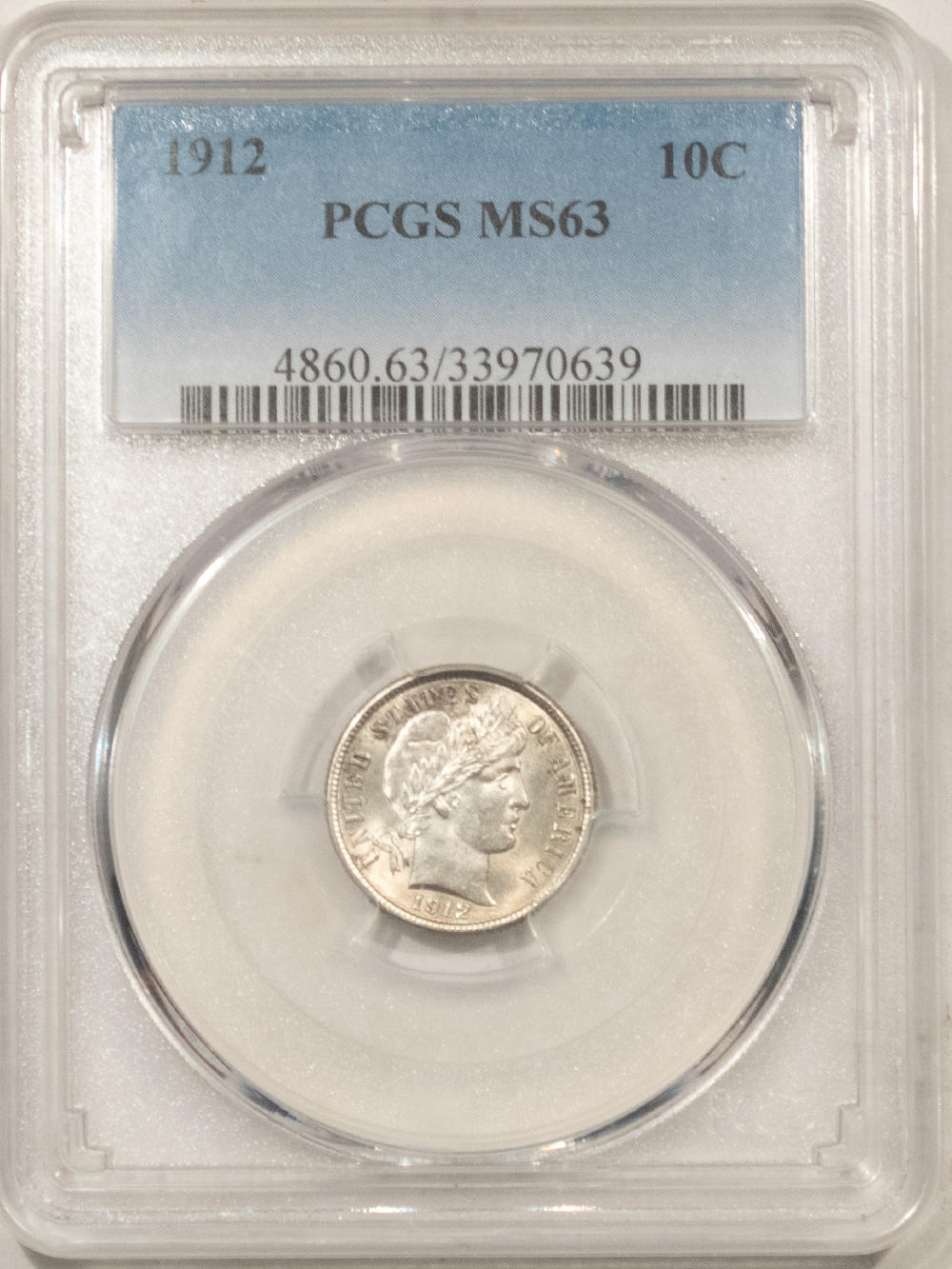 This is a 1912 BARBER DIME – PCGS MS-63. Our commitment is to provide you with quality coins and collectibles at the best possible prices. This piece is no exception. Please note, the coin and collectibles markets do fluctuate, and prices occasionally will change. In this rare circumstance, we will contact you first to verify your order.