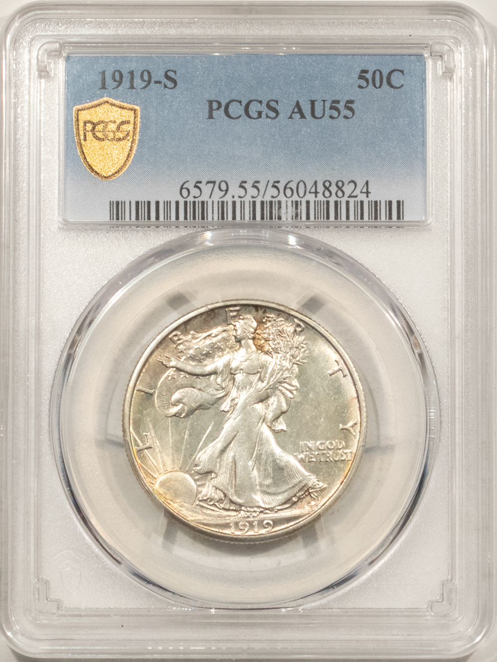 This is a 1919-S WALKING LIBERTY HALF DOLLAR – PCGS AU-55, RARE! LUSTROUS! Our commitment is to provide you with quality coins and collectibles at the best possible prices. This piece is no exception. Please note, the coin and collectibles markets do fluctuate, and prices occasionally will change. In this rare circumstance, we will contact you first to verify your order.