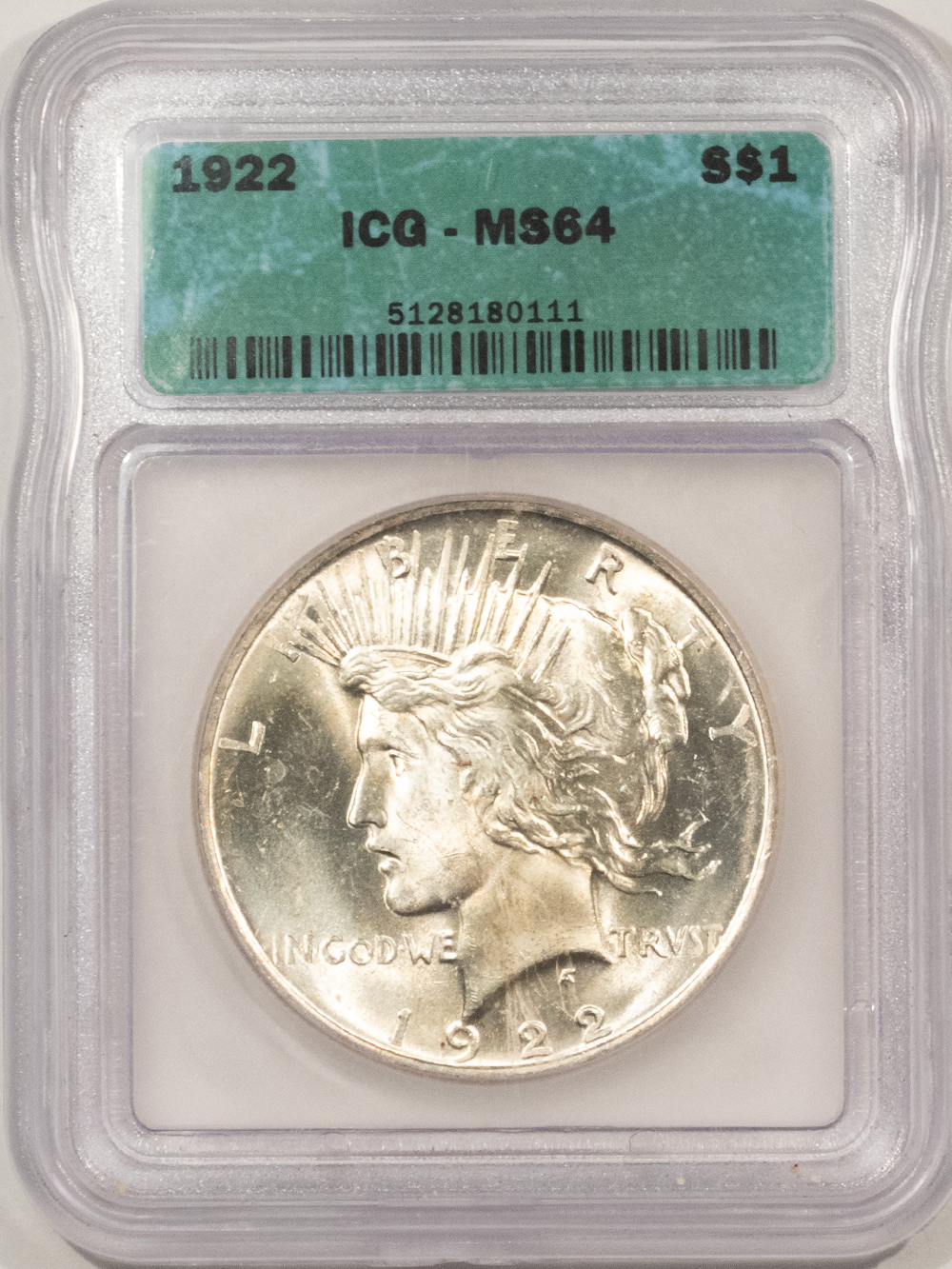 This is a 1922 $1 PEACE DOLLAR – ICG MS-64. Our commitment is to provide you with quality coins and collectibles at the best possible prices. This piece is no exception. Please note, the coin and collectibles markets do fluctuate, and prices occasionally will change. In this rare circumstance, we will contact you first to verify your order.