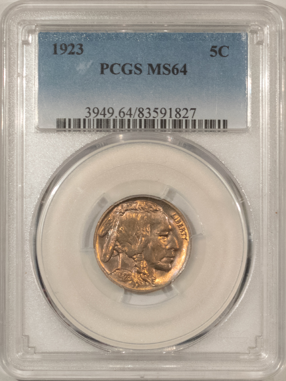 This is a 1923 BUFFALO NICKEL – PCGS MS-64, PREMIUM QUALITY! Our commitment is to provide you with quality coins and collectibles at the best possible prices. This piece is no exception. Please note, the coin and collectibles markets do fluctuate, and prices occasionally will change. In this rare circumstance, we will contact you first to verify your order.