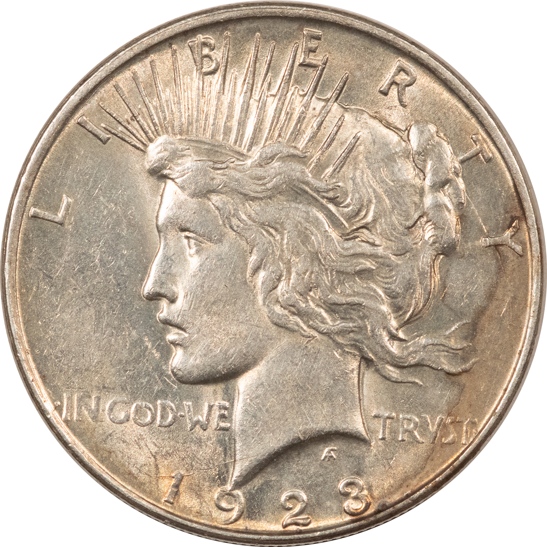 This is a 1923-D $1 PEACE DOLLAR – HIGH GRADE, NEARLY UNCIRCULATED, LOOKS CHOICE! Our commitment is to provide you with quality coins and collectibles at the best possible prices. This piece is no exception. Please note, the coin and collectibles markets do fluctuate, and prices occasionally will change. In this rare circumstance, we will contact you first to verify your order.
