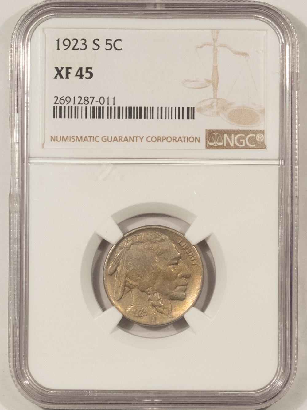 This is a 1923-S BUFFALO NICKEL – NGC XF-45. Our commitment is to provide you with quality coins and collectibles at the best possible prices. This piece is no exception. Please note, the coin and collectibles markets do fluctuate, and prices occasionally will change. In this rare circumstance, we will contact you first to verify your order.
