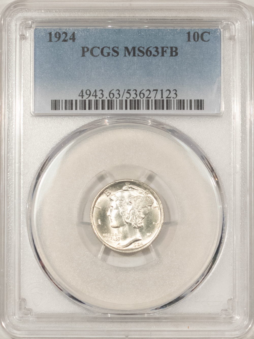 This is a 1924 MERCURY DIME – PCGS MS-63 FB, WHITE & CHOICE! Our commitment is to provide you with quality coins and collectibles at the best possible prices. This piece is no exception. Please note, the coin and collectibles markets do fluctuate, and prices occasionally will change. In this rare circumstance, we will contact you first to verify your order.