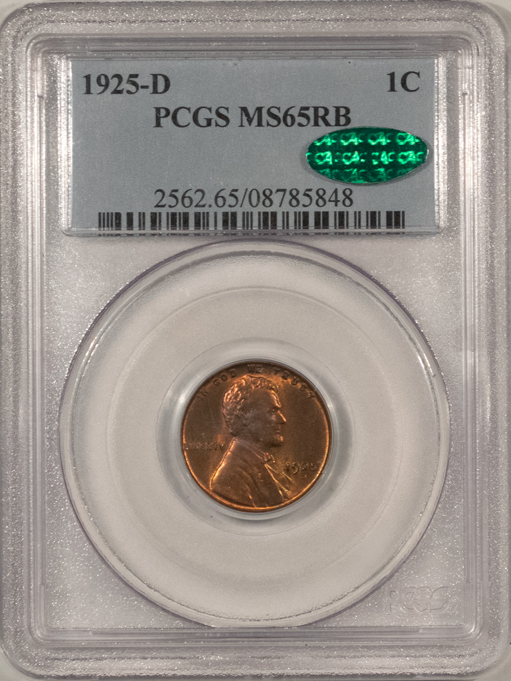 This is a 1925-D LINCOLN CENT – PCGS MS-65 RB, PREMIUM QUALITY GEM! TOUGH! CAC APPROVED! Our commitment is to provide you with quality coins and collectibles at the best possible prices. This piece is no exception. Please note, the coin and collectibles markets do fluctuate, and prices occasionally will change. In this rare circumstance, we will contact you first to verify your order.