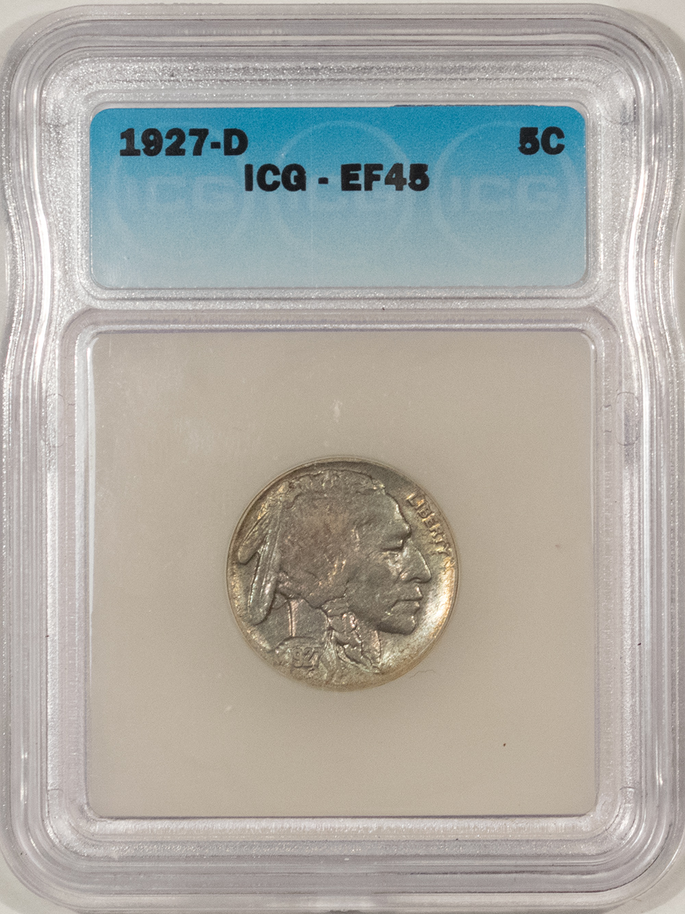 This is a 1927-D BUFFALO NICKEL – ICG EF-45. Our commitment is to provide you with quality coins and collectibles at the best possible prices. This piece is no exception. Please note, the coin and collectibles markets do fluctuate, and prices occasionally will change. In this rare circumstance, we will contact you first to verify your order.