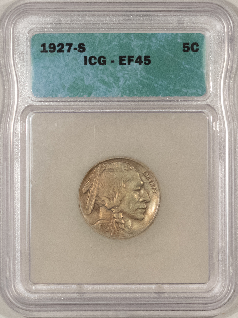 This is a 1927-S BUFFALO NICKEL – ICG EF-45. Our commitment is to provide you with quality coins and collectibles at the best possible prices. This piece is no exception. Please note, the coin and collectibles markets do fluctuate, and prices occasionally will change. In this rare circumstance, we will contact you first to verify your order.