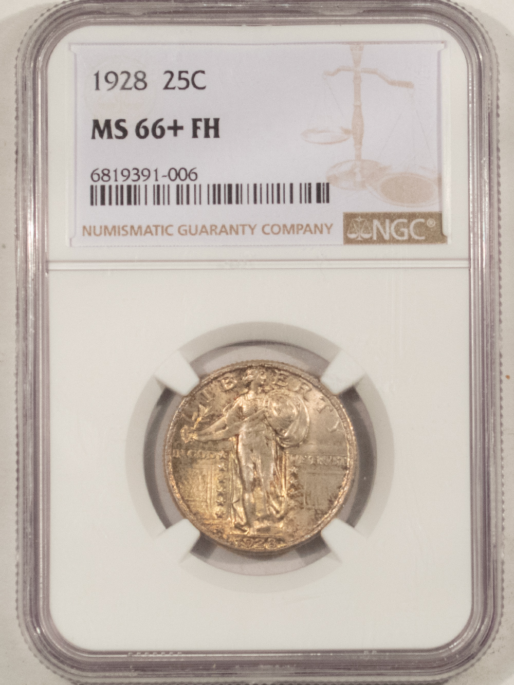This is a 1928 STANDING LIBERTY QUARTER – NGC MS-66+ FH, ORIGINAL & PREMIUM QUALITY! Our commitment is to provide you with quality coins and collectibles at the best possible prices. This piece is no exception. Please note, the coin and collectibles markets do fluctuate, and prices occasionally will change. In this rare circumstance, we will contact you first to verify your order.