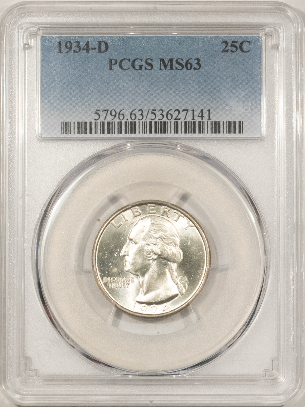 This is a 1934-D WASHINGTON QUARTER – PCGS MS-63, WHITE & CHOICE! Our commitment is to provide you with quality coins and collectibles at the best possible prices. This piece is no exception. Please note, the coin and collectibles markets do fluctuate, and prices occasionally will change. In this rare circumstance, we will contact you first to verify your order.