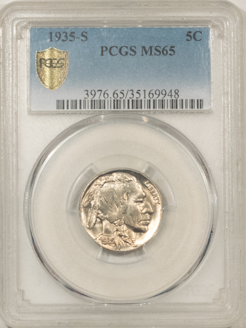This is a 1935-S BUFFALO NICKEL – PCGS MS-65, A BLAZER! Our commitment is to provide you with quality coins and collectibles at the best possible prices. This piece is no exception. Please note, the coin and collectibles markets do fluctuate, and prices occasionally will change. In this rare circumstance, we will contact you first to verify your order.