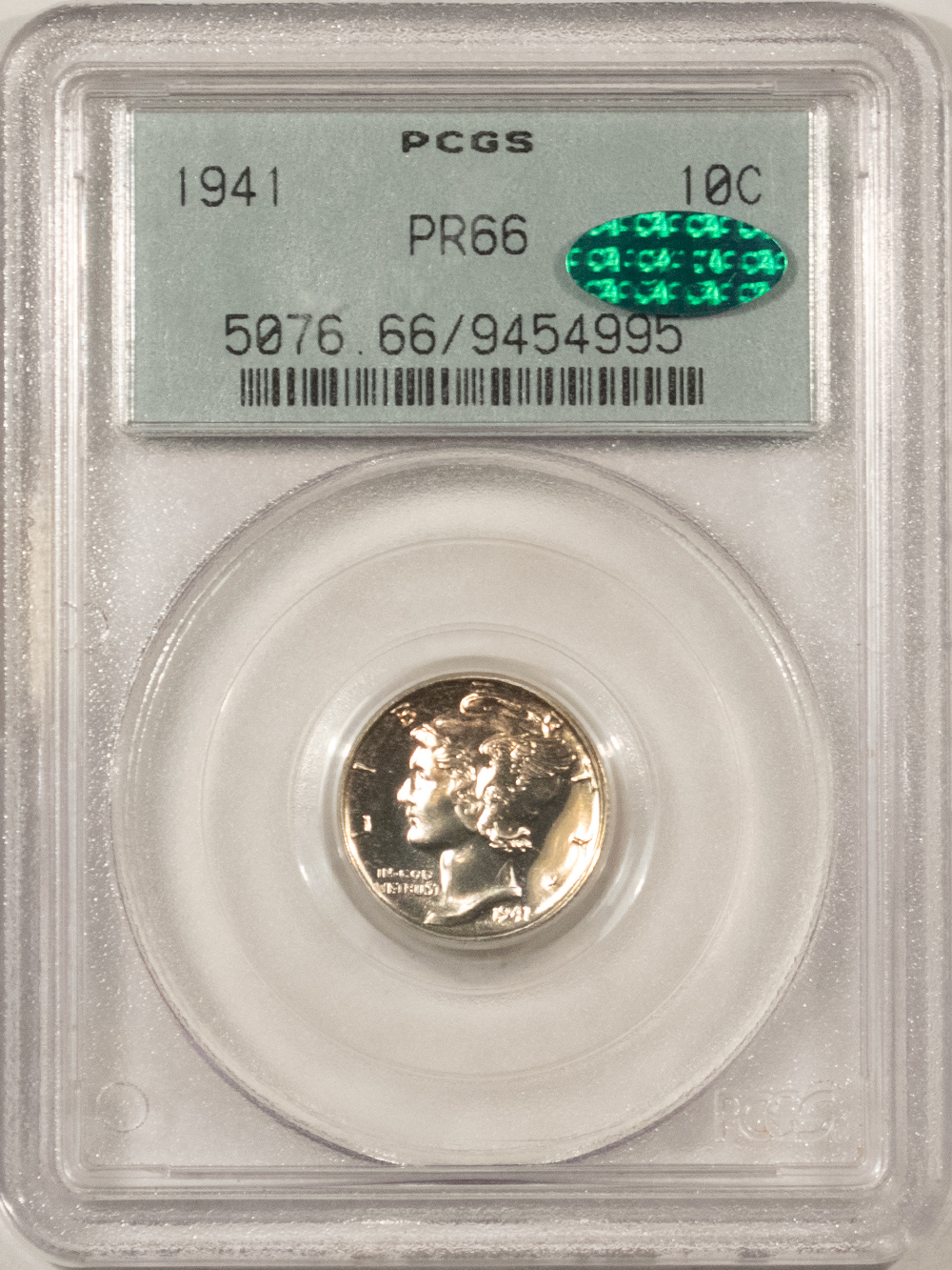 This is a 1941 PROOF MERCURY DIME – PCGS PR-66, OLD GREEN HOLDER, PREMIUM QUALITY & CAC APPROVED! Our commitment is to provide you with quality coins and collectibles at the best possible prices. This piece is no exception. Please note, the coin and collectibles markets do fluctuate, and prices occasionally will change. In this rare circumstance, we will contact you first to verify your order.