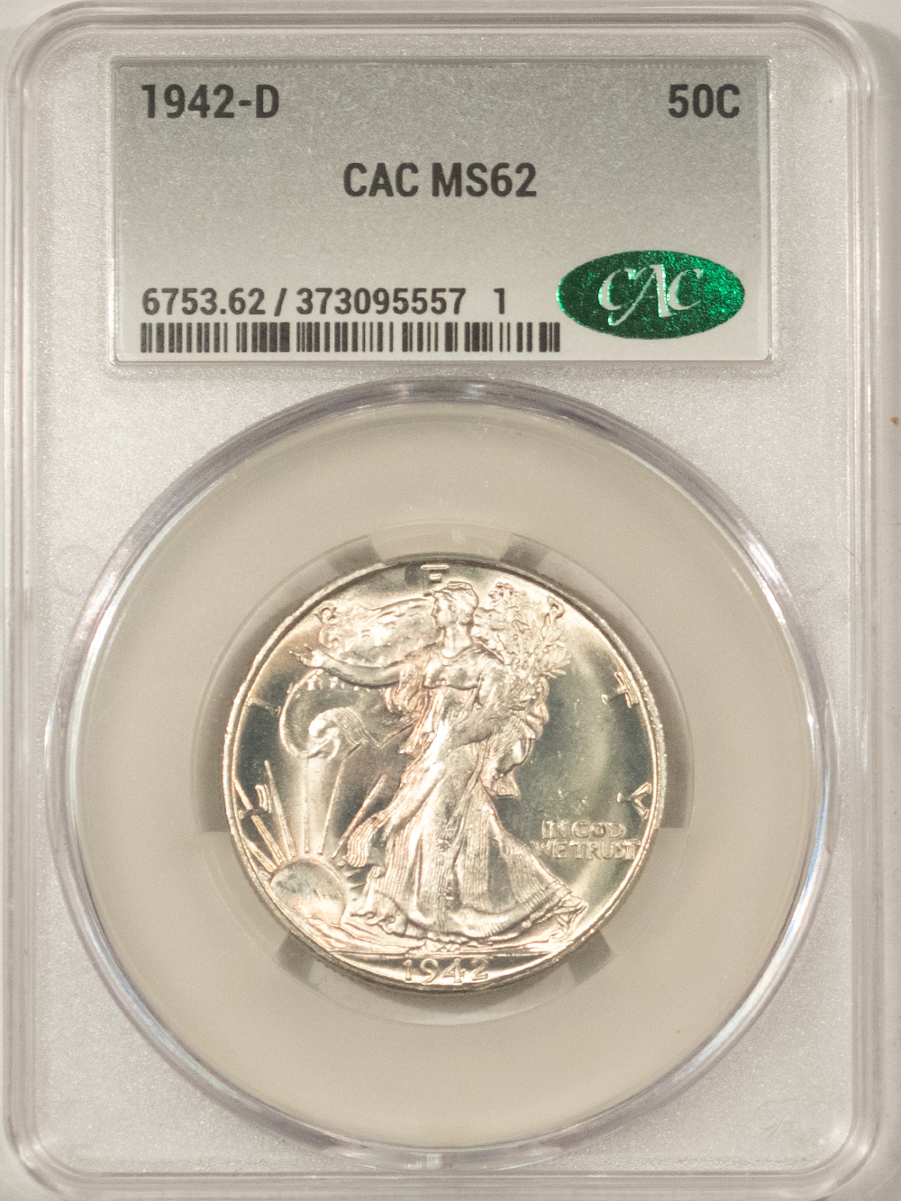 This is a 1942-D WALKING LIBERTY HALF DOLLAR – CACG MS-62, CAC APPROVED! Our commitment is to provide you with quality coins and collectibles at the best possible prices. This piece is no exception. Please note, the coin and collectibles markets do fluctuate, and prices occasionally will change. In this rare circumstance, we will contact you first to verify your order.