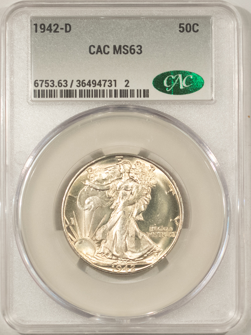 This is a 1942-D WALKING LIBERTY HALF DOLLAR – CACG MS-63, CAC APPROVED! Our commitment is to provide you with quality coins and collectibles at the best possible prices. This piece is no exception. Please note, the coin and collectibles markets do fluctuate, and prices occasionally will change. In this rare circumstance, we will contact you first to verify your order.