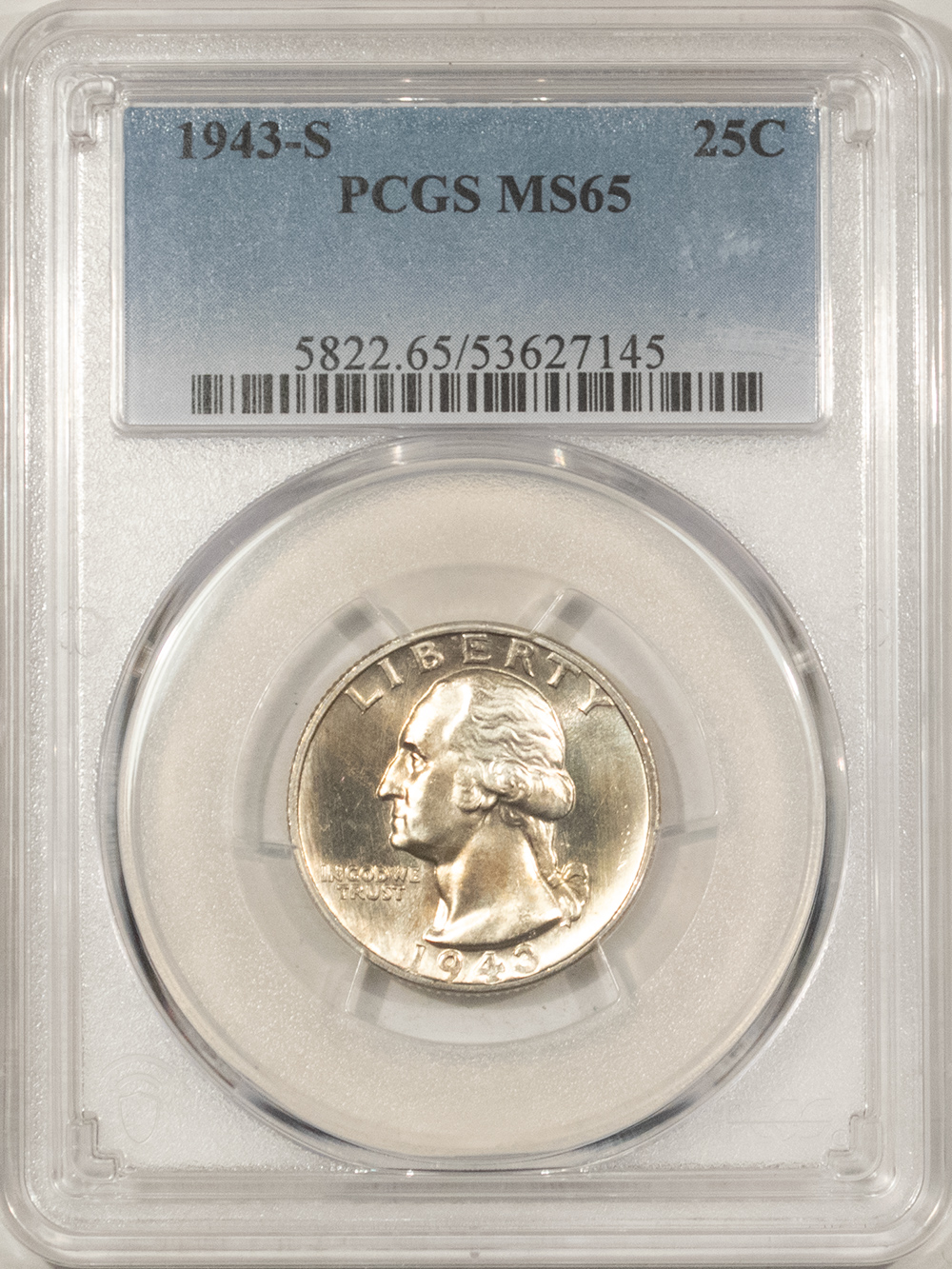 This is a 1943-S WASHINGTON QUARTER – PCGS MS-65, LUSTROUS GEM! Our commitment is to provide you with quality coins and collectibles at the best possible prices. This piece is no exception. Please note, the coin and collectibles markets do fluctuate, and prices occasionally will change. In this rare circumstance, we will contact you first to verify your order.