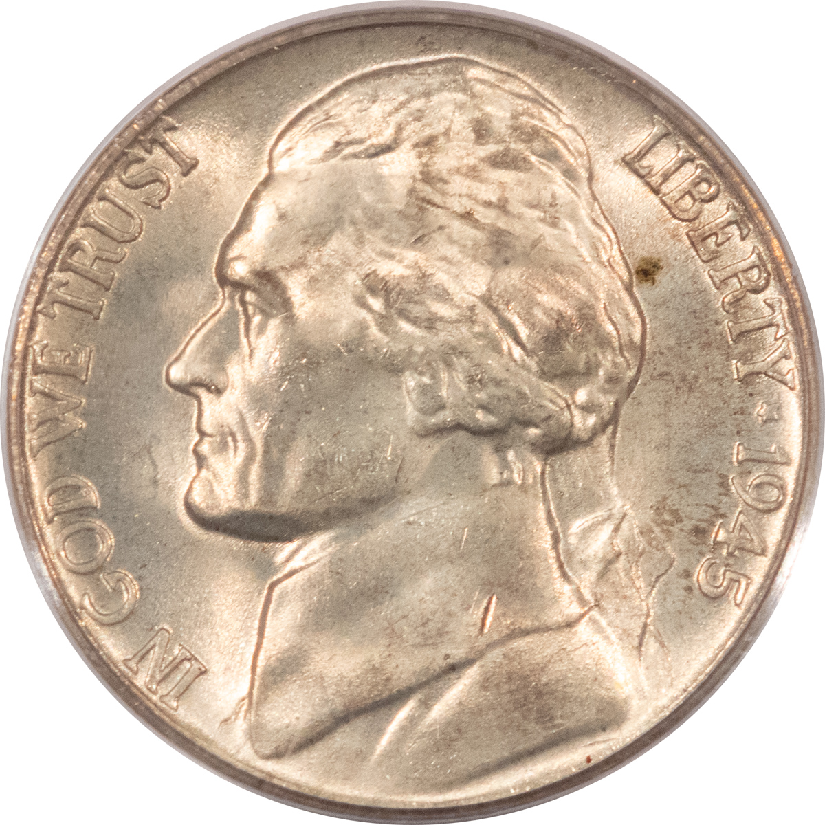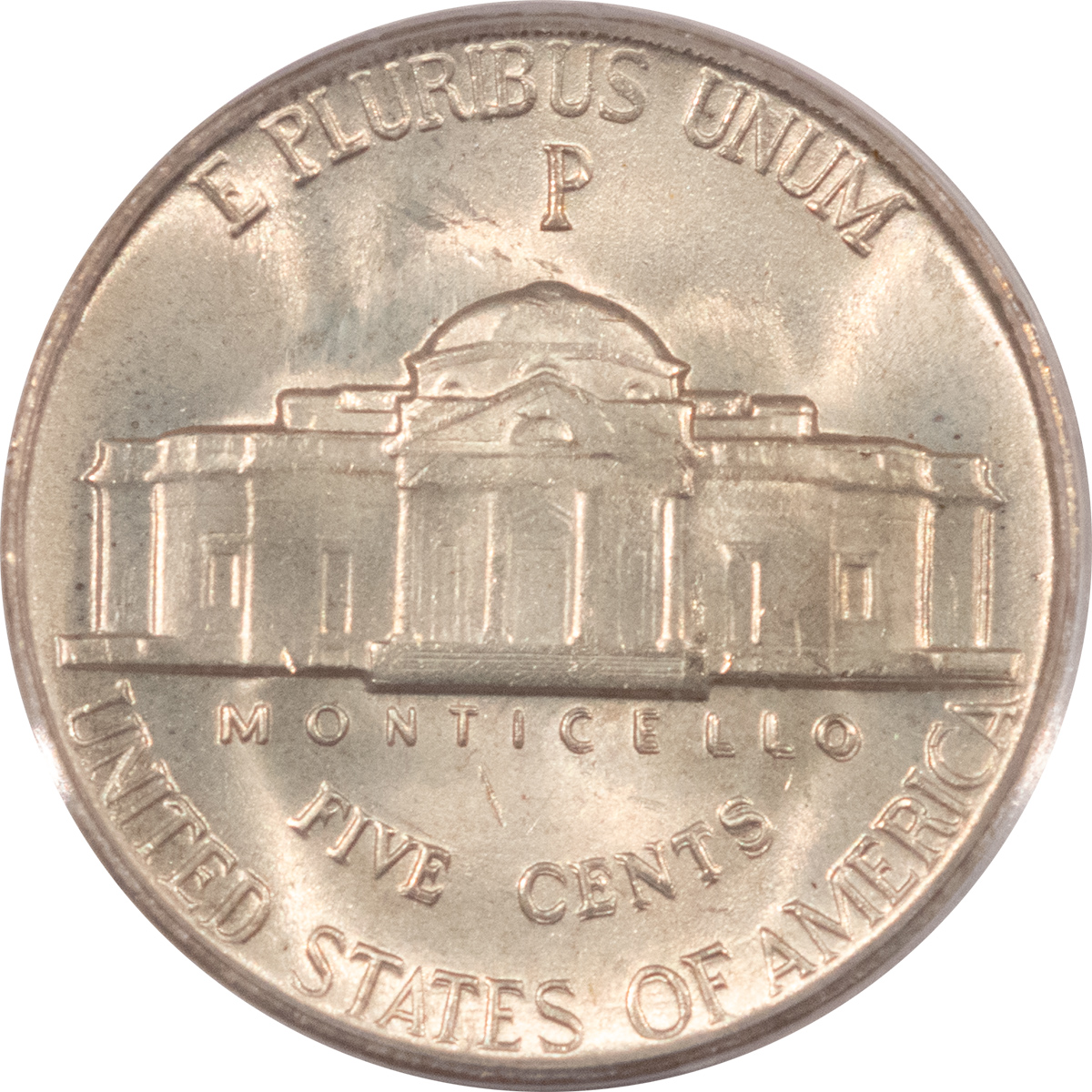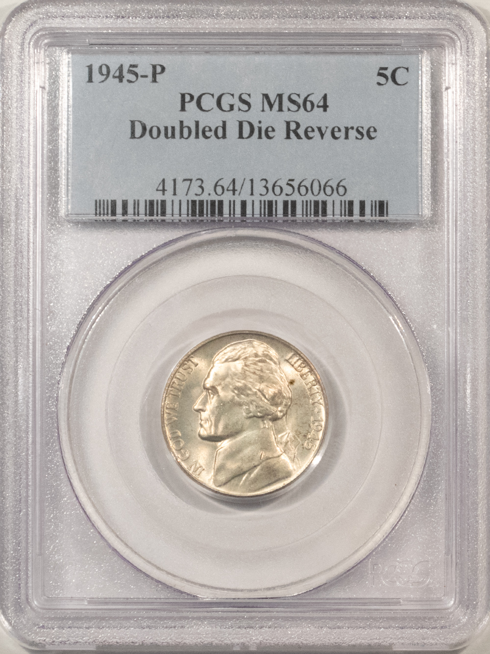 This is a 1945-P JEFFERSON NICKEL DOUBLED DIE REVERSE, PCGS MS-64, W/ 3 STEPS, RARE IN FS! Our commitment is to provide you with quality coins and collectibles at the best possible prices. This piece is no exception. Please note, the coin and collectibles markets do fluctuate, and prices occasionally will change. In this rare circumstance, we will contact you first to verify your order.