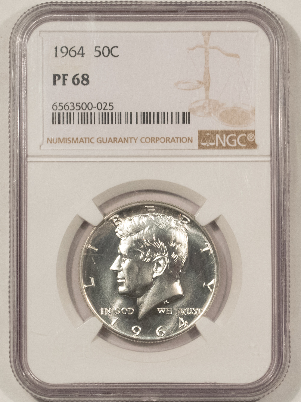 This is a 1964 PROOF KENNEDY HALF DOLLAR – NGC PF-68, WHITE! Our commitment is to provide you with quality coins and collectibles at the best possible prices. This piece is no exception. Please note, the coin and collectibles markets do fluctuate, and prices occasionally will change. In this rare circumstance, we will contact you first to verify your order.