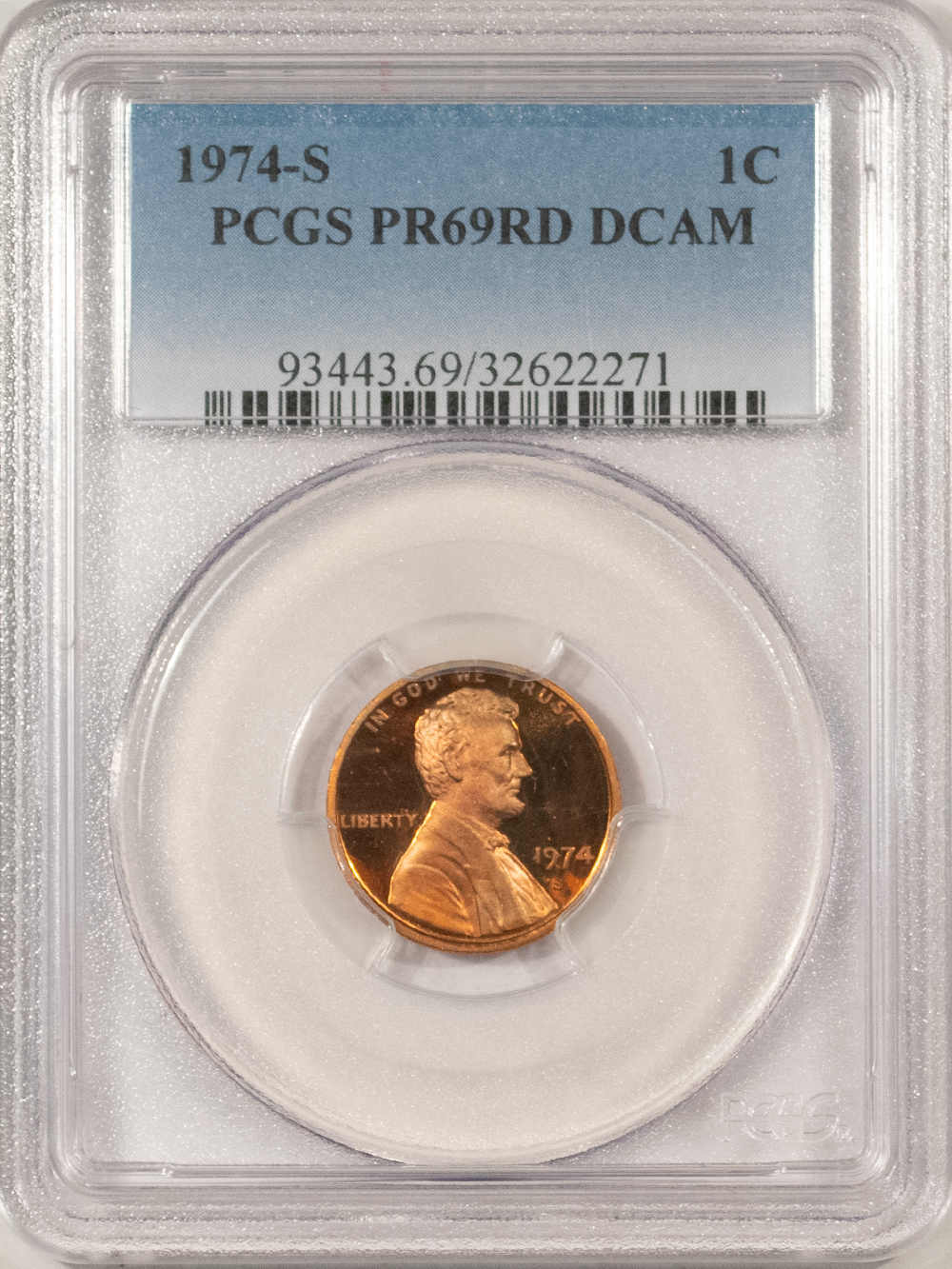 This is a 1974-S LINCOLN CENT PCGS PR-69 RD DCAM. Our commitment is to provide you with quality coins and collectibles at the best possible prices. This piece is no exception. Please note, the coin and collectibles markets do fluctuate, and prices occasionally will change. In this rare circumstance, we will contact you first to verify your order.