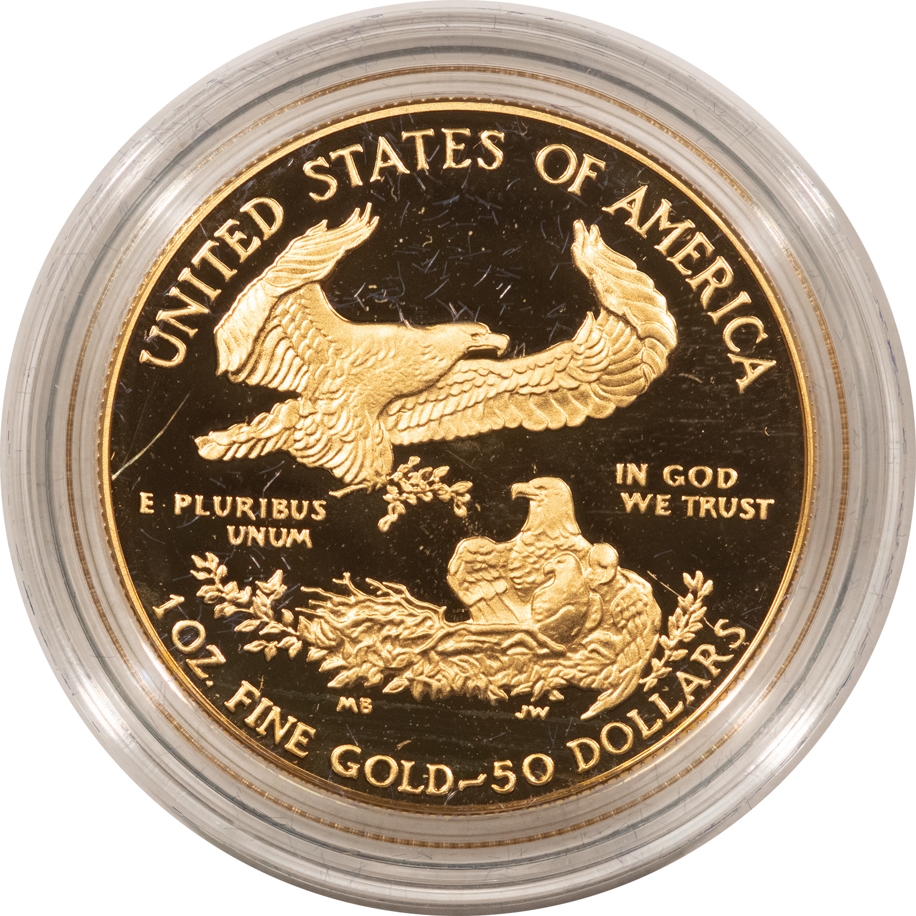 This is a 1986-W 1 OZ $50 PROOF AMERICAN GOLD EAGLE, GEM PROOF W/ ORIG BOX & COA, 1ST YEAR Our commitment is to provide you with quality coins and collectibles at the best possible prices. This piece is no exception. Please note, the coin and collectibles markets do fluctuate, and prices occasionally will change. In this rare circumstance, we will contact you first to verify your order.