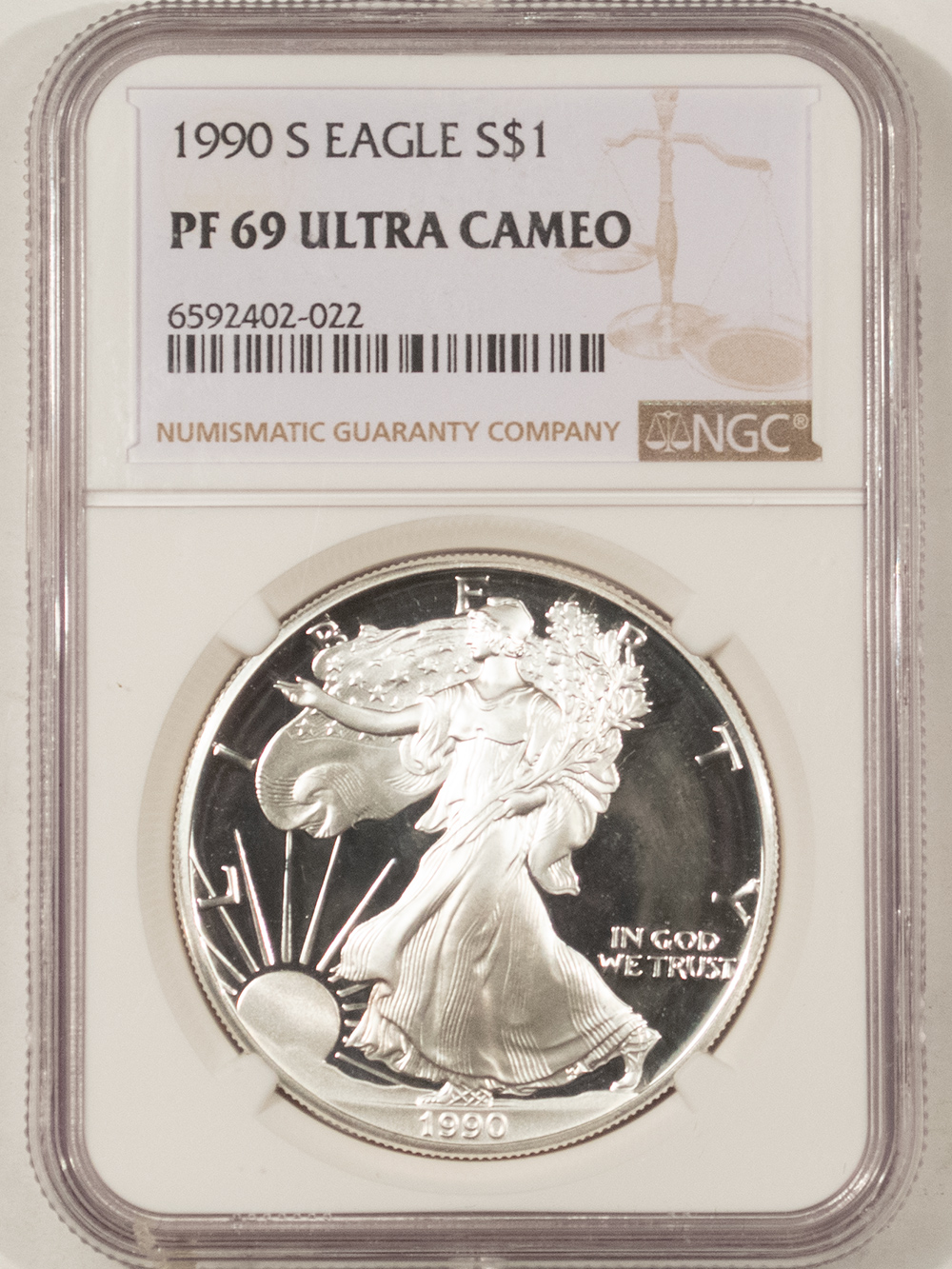 This is a 1990-S $1 SILVER EAGLE, NGC PF 69 ULTRA CAMEO! Our commitment is to provide you with quality coins and collectibles at the best possible prices. This piece is no exception. Please note, the coin and collectibles markets do fluctuate, and prices occasionally will change. In this rare circumstance, we will contact you first to verify your order.