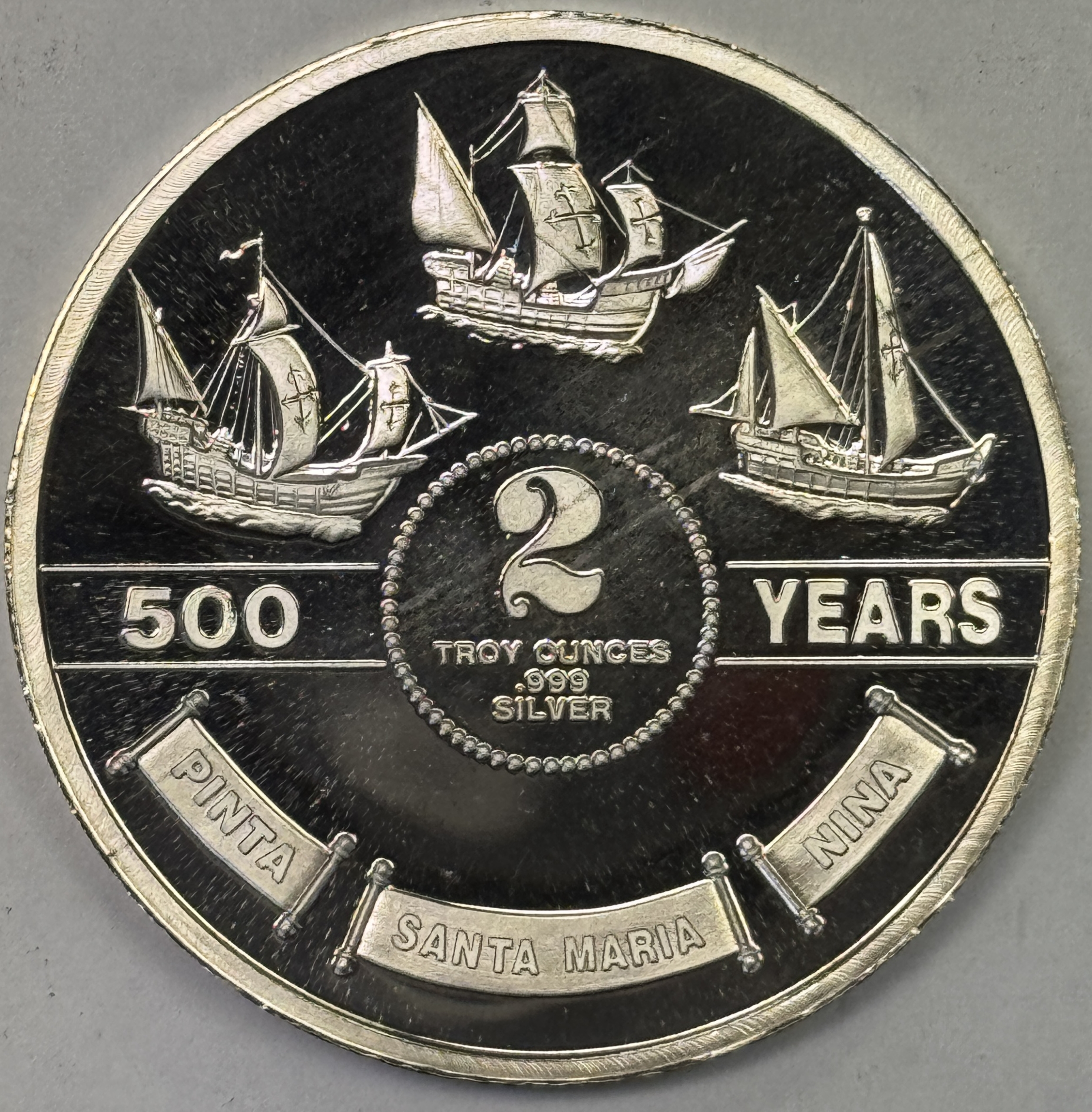 This is a 1992 COLUMBUS QUINCENTENNIAL 2 OZ .999 SILVER ROUND – GEM PROOF IN CAPSULE! Our commitment is to provide you with quality coins and collectibles at the best possible prices. This piece is no exception. Please note, the coin and collectibles markets do fluctuate, and prices occasionally will change. In this rare circumstance, we will contact you first to verify your order.