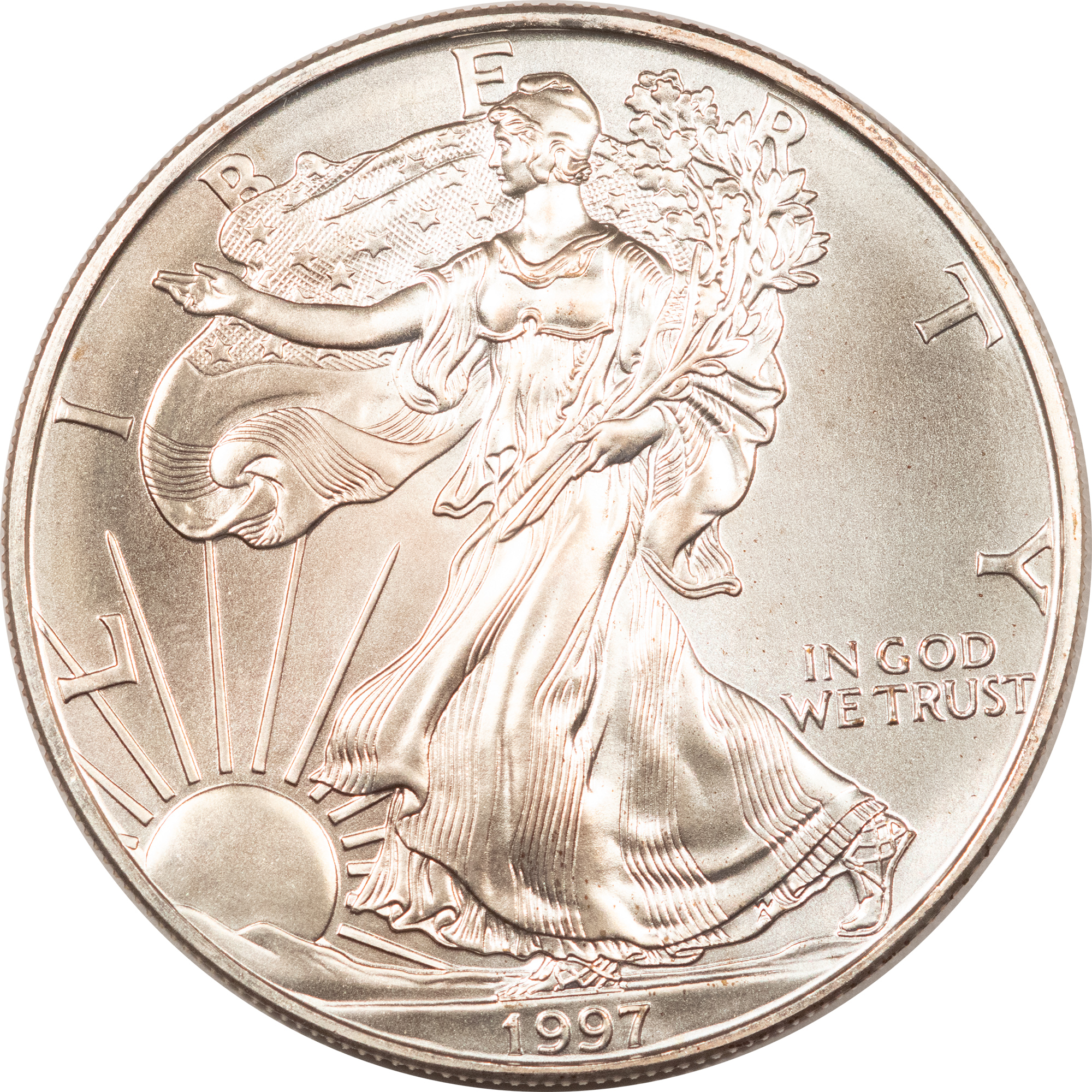 This is a 1997 $1 AMERICAN SILVER EAGLE, 1 OZ .999 – GEM UNCIRCULATED! Our commitment is to provide you with quality coins and collectibles at the best possible prices. This piece is no exception. Please note, the coin and collectibles markets do fluctuate, and prices occasionally will change. In this rare circumstance, we will contact you first to verify your order.