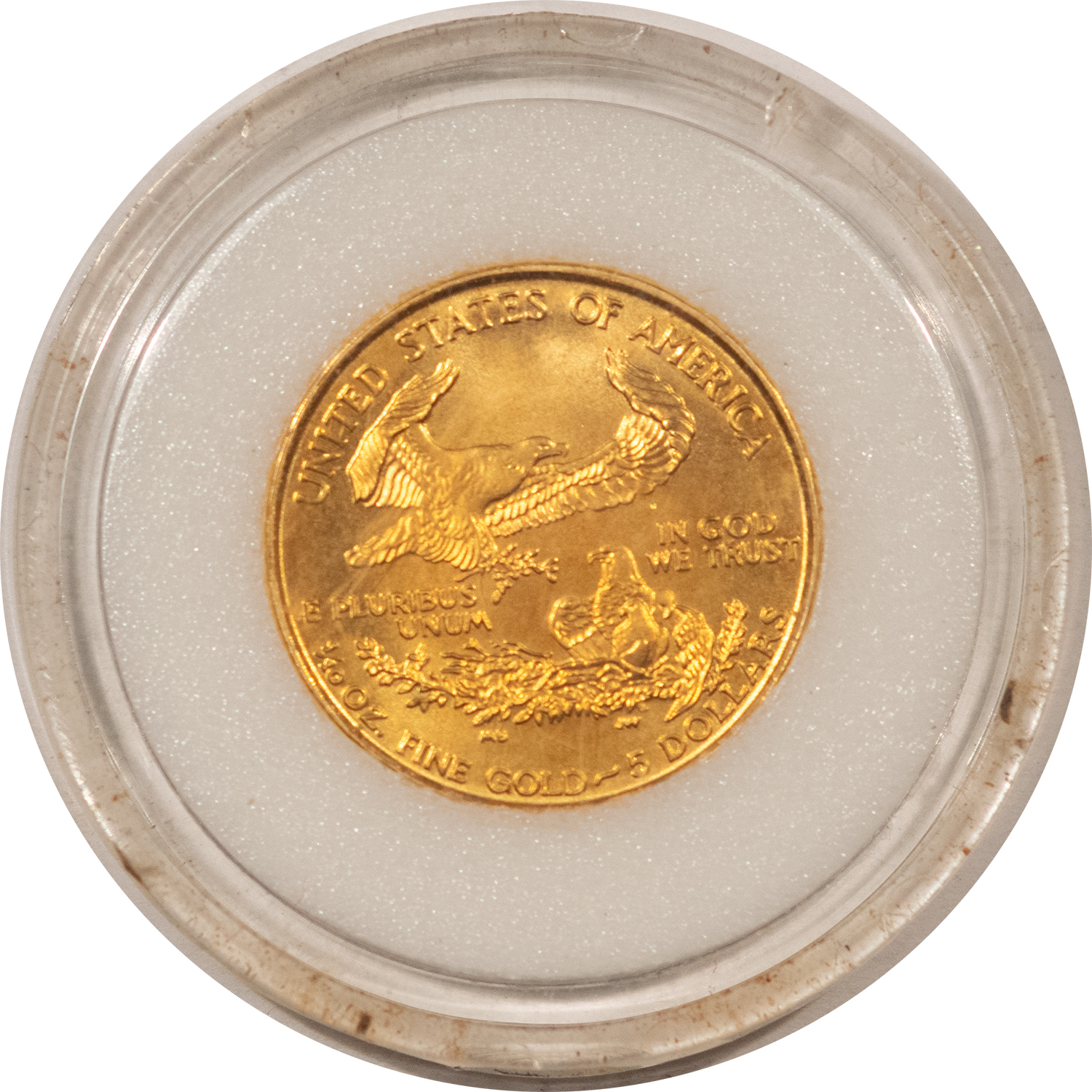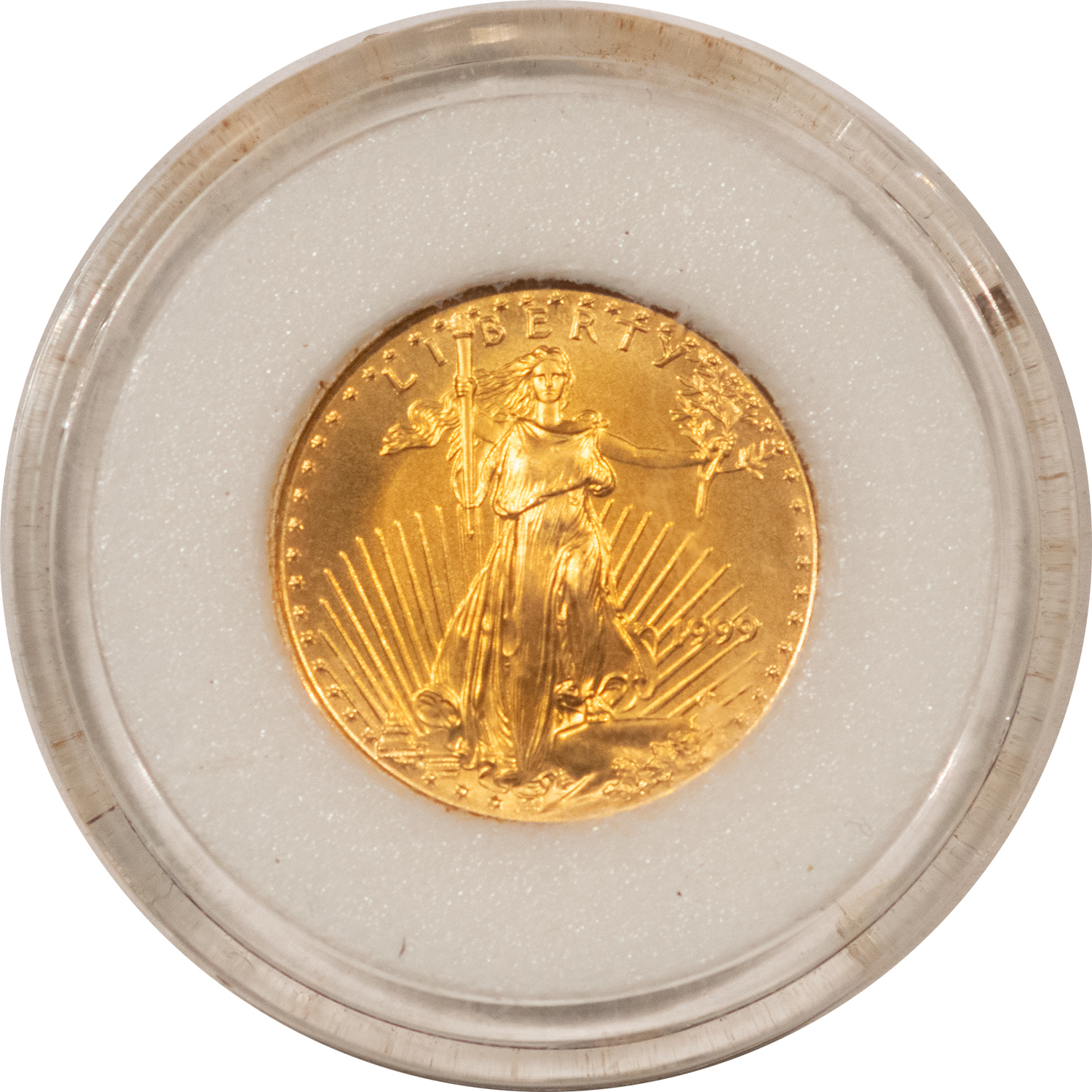 This is a 1999 $5 AMERICAN GOLD EAGLE, 1/10 OZ – GEM UNCIRCULATED! Our commitment is to provide you with quality coins and collectibles at the best possible prices. This piece is no exception. Please note, the coin and collectibles markets do fluctuate, and prices occasionally will change. In this rare circumstance, we will contact you first to verify your order.