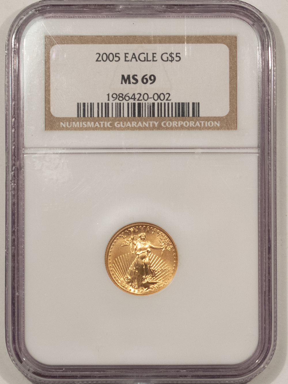 This is a 2005 $5 AMERICAN GOLD EAGLE – NGC MS-69 Our commitment is to provide you with quality coins and collectibles at the best possible prices. This piece is no exception. Please note, the coin and collectibles markets do fluctuate, and prices occasionally will change. In this rare circumstance, we will contact you first to verify your order.